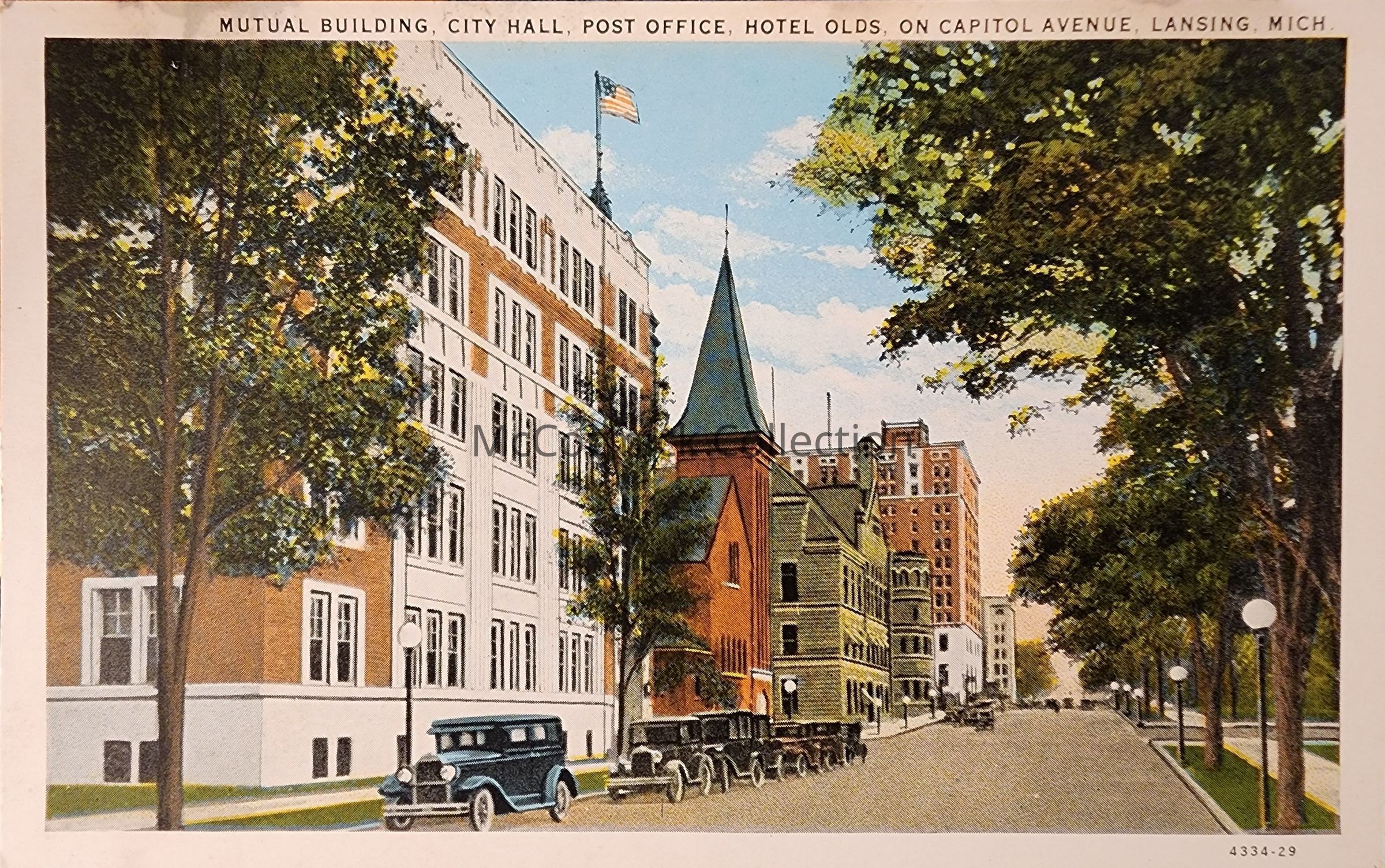 Mutual Building, City Hall, Post Office, Hotel Olds, on Capitol Avenue, Lansing, Mich., Postcard