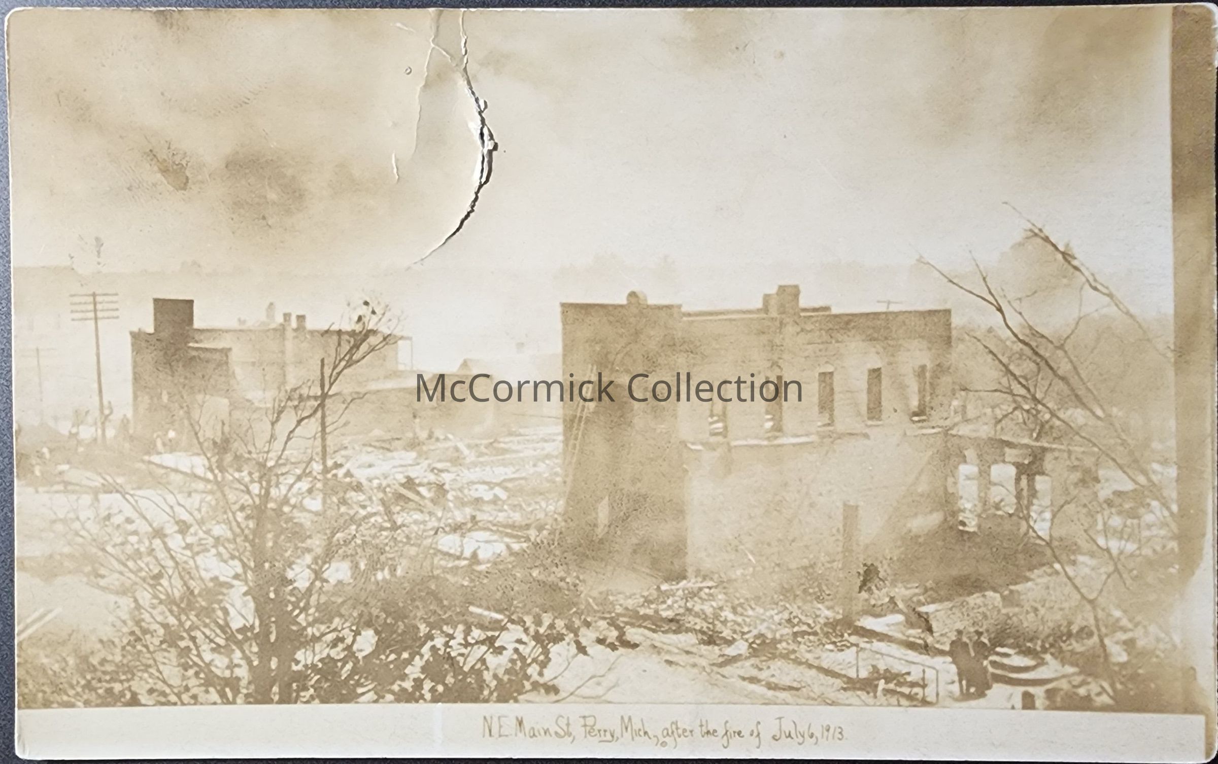 N.E. Main St., Perry, Mich., after the fire of July 6, 1914l3 RPPC