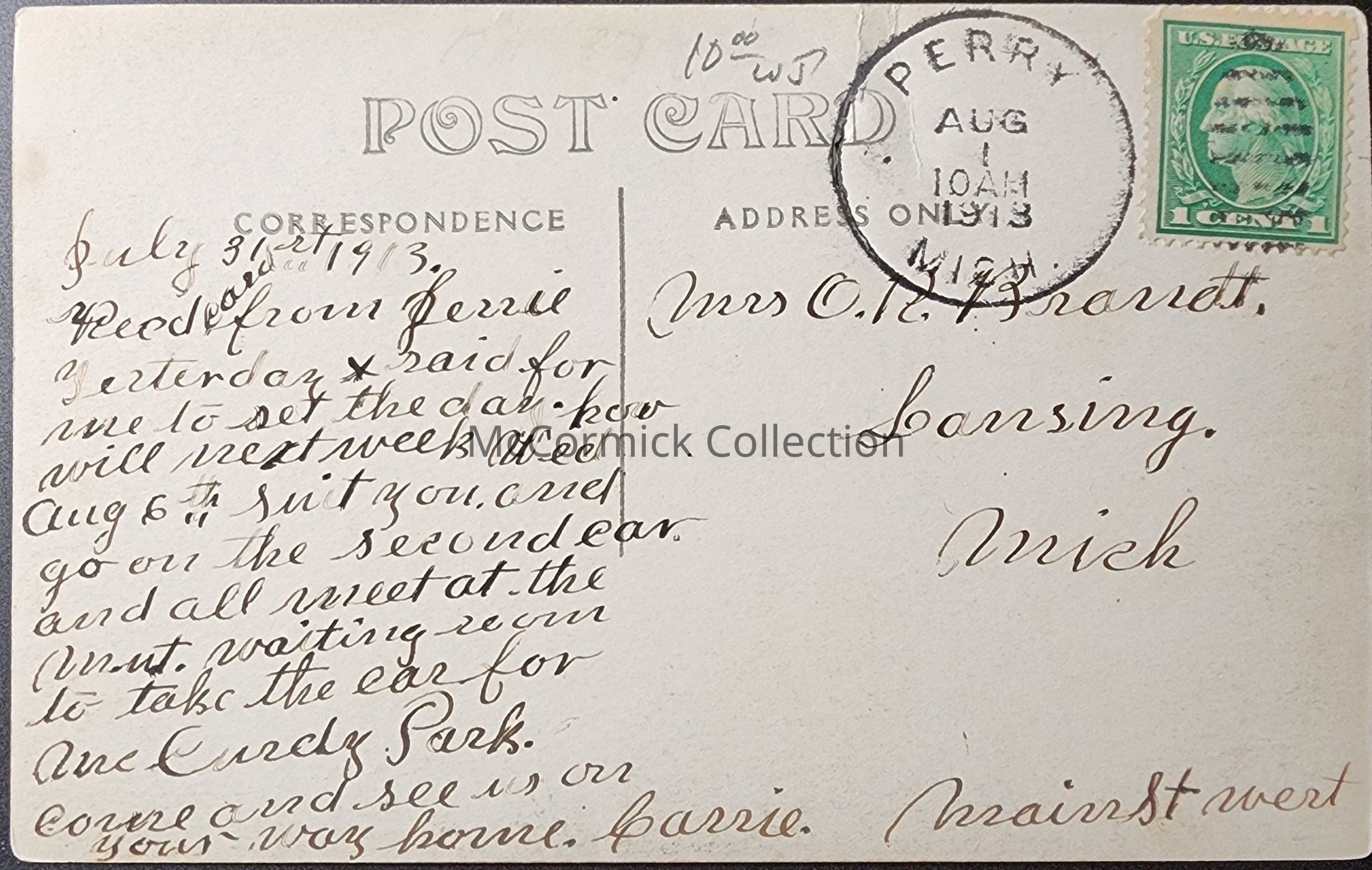 Real photo postcard of Perry, Michigan, Main Street after the 1913 fire. Postally used, 1913 Perry postmark.