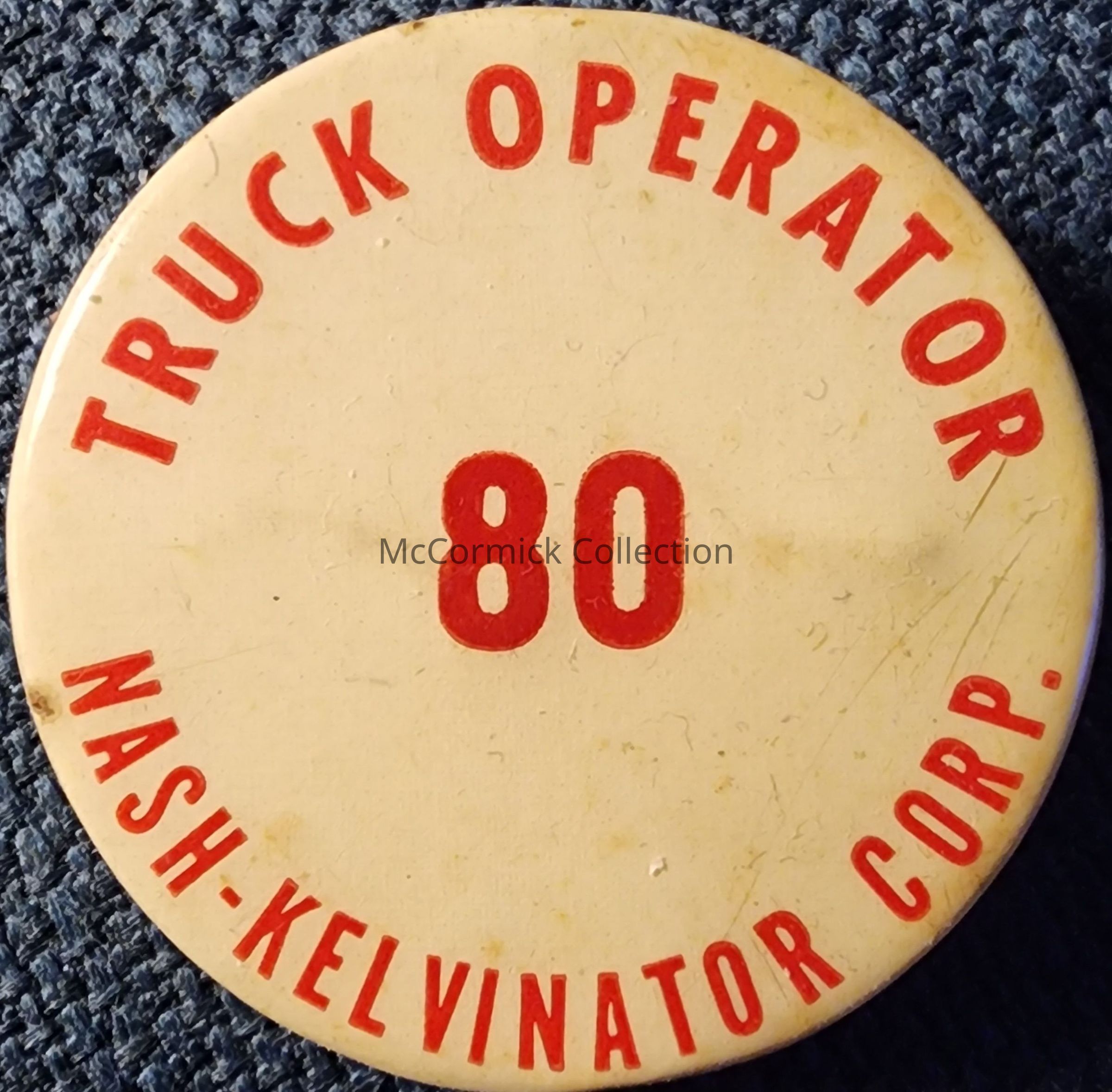 Nash-Kelvinator Corp. Truck Operator Badge 80