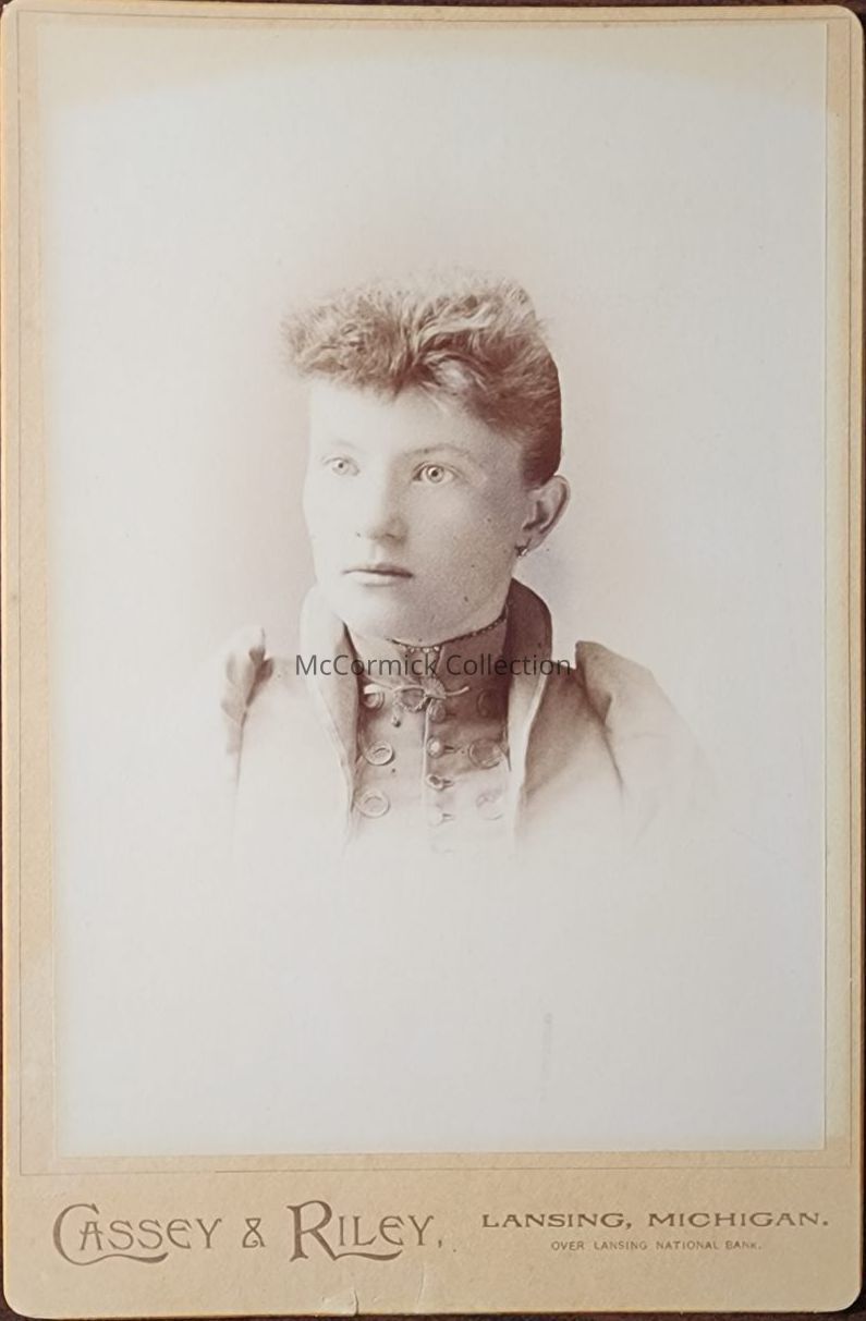 Cabinet card photograph of Nellie L. Gibson by Lansing photographer Cassey and Riley.