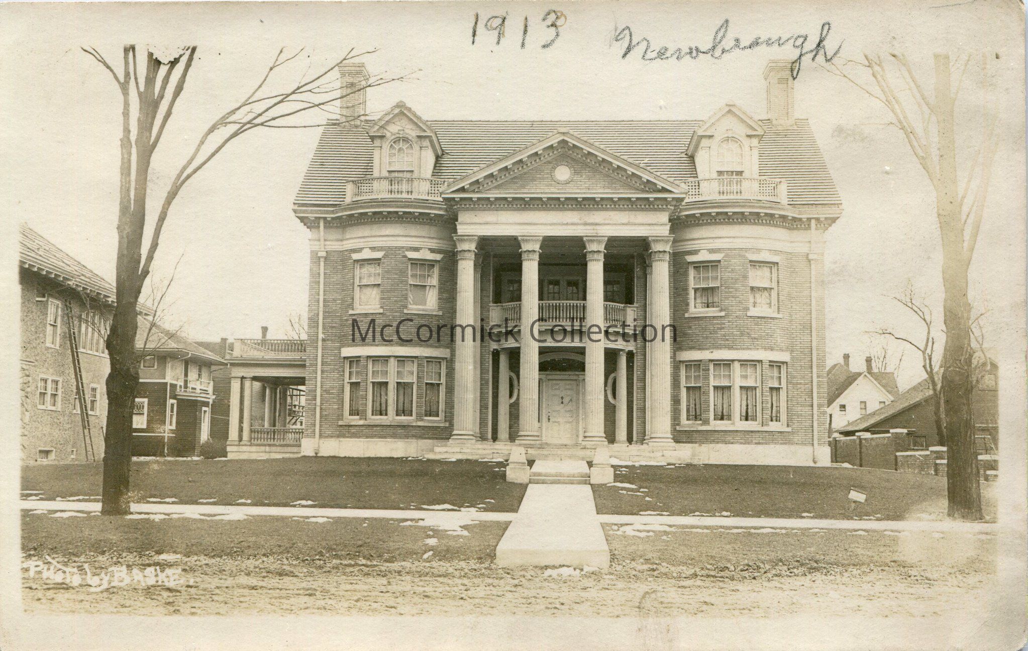 This photo postcard, by Lansing photographer Clarence A. Baske, depicts the Newbrough House on North Capitol Avenue in 1913. The home was designed by Lansing architect Samuel Butterworth and was built in 1912 for William Newbrough. Newbrough worked for Lansing's E. Bement Co. and Clark Automobile Co. before founding the New Way Motor Co. in Lansing. The home has served many uses over the years, including the Community Chest headquarters and Auto Owners Insurance Co. central headquarters. At 615 N. Capitol Ave., it is currently the home of Mourer-Foster Insurance.