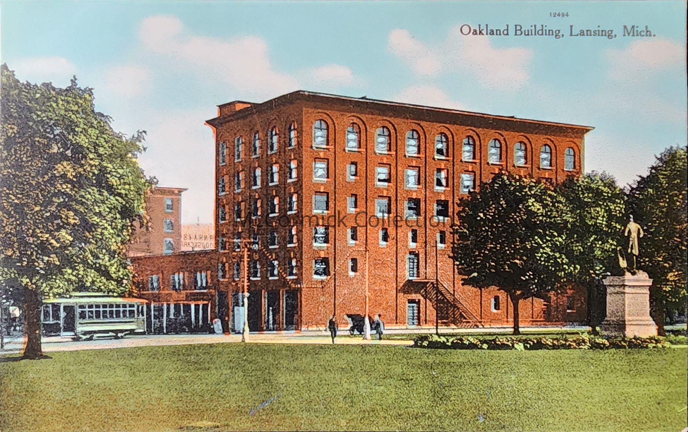 Oakland Building and State Capitol grounds including Blair Monument. Published by S.H. Knox of Lansing.