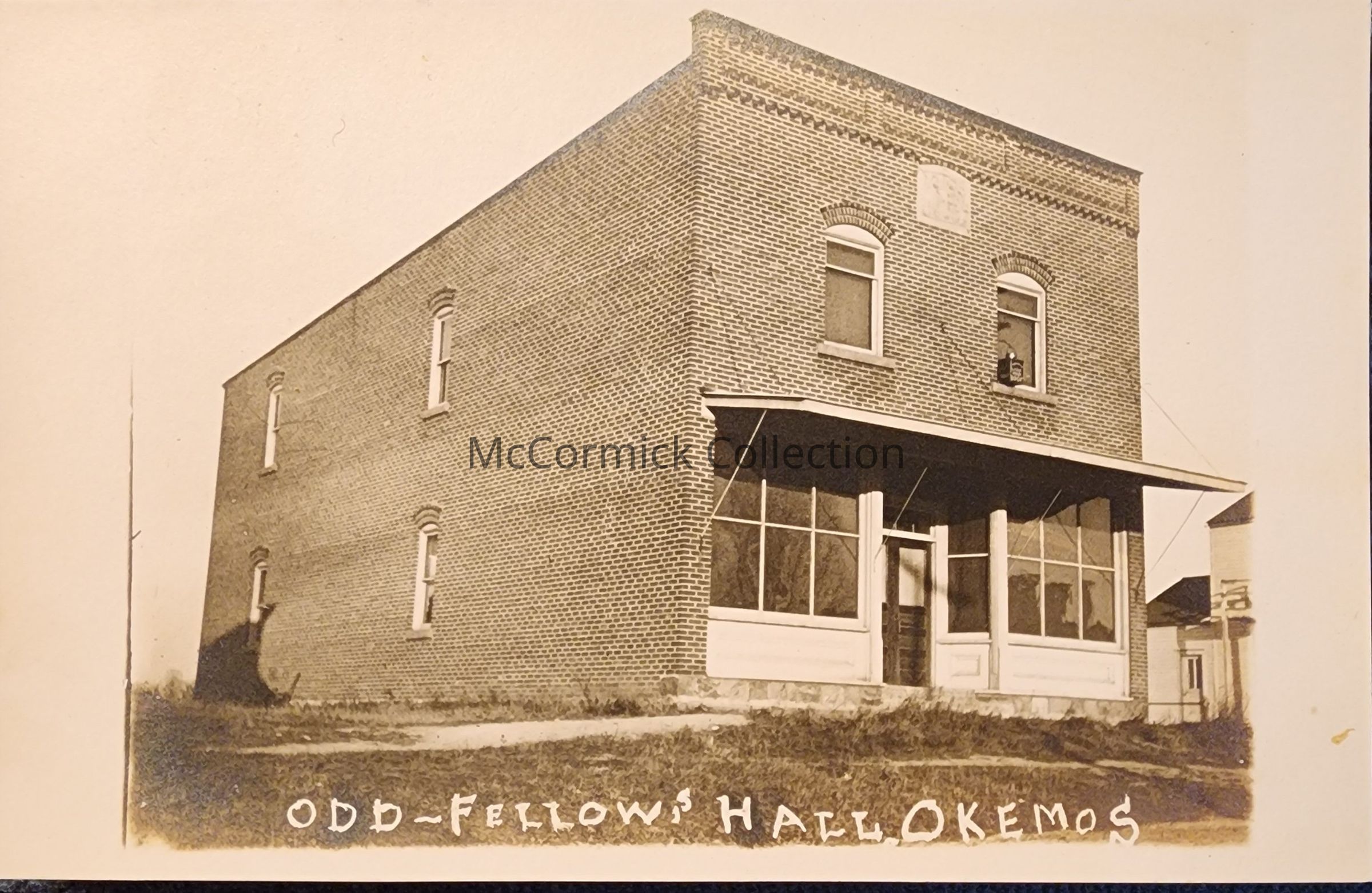 Real photo postcard of the Okemos, Michigan, Odd Fellows Hall. Postally unused.