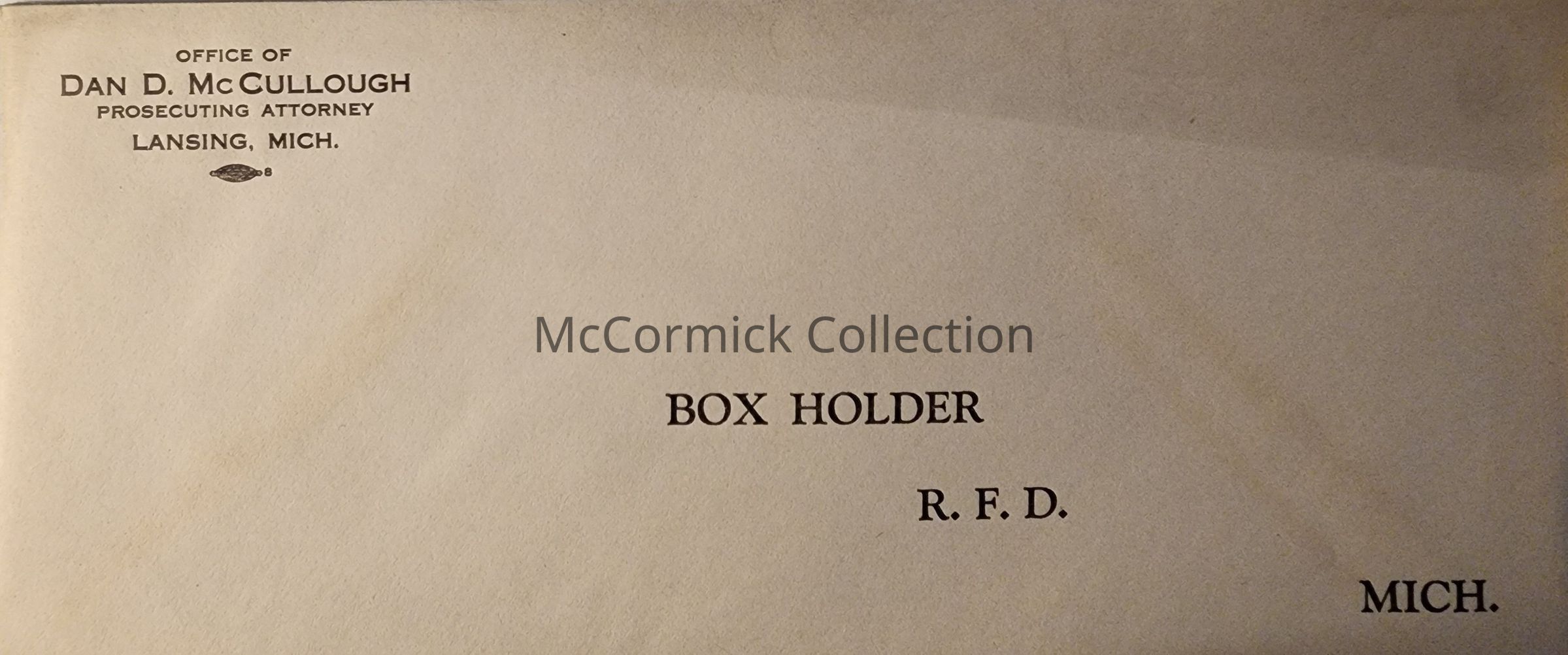 Office of Dan D. McCullough, Prosecuting Attorney, Lansing, Mich., Postal Cover