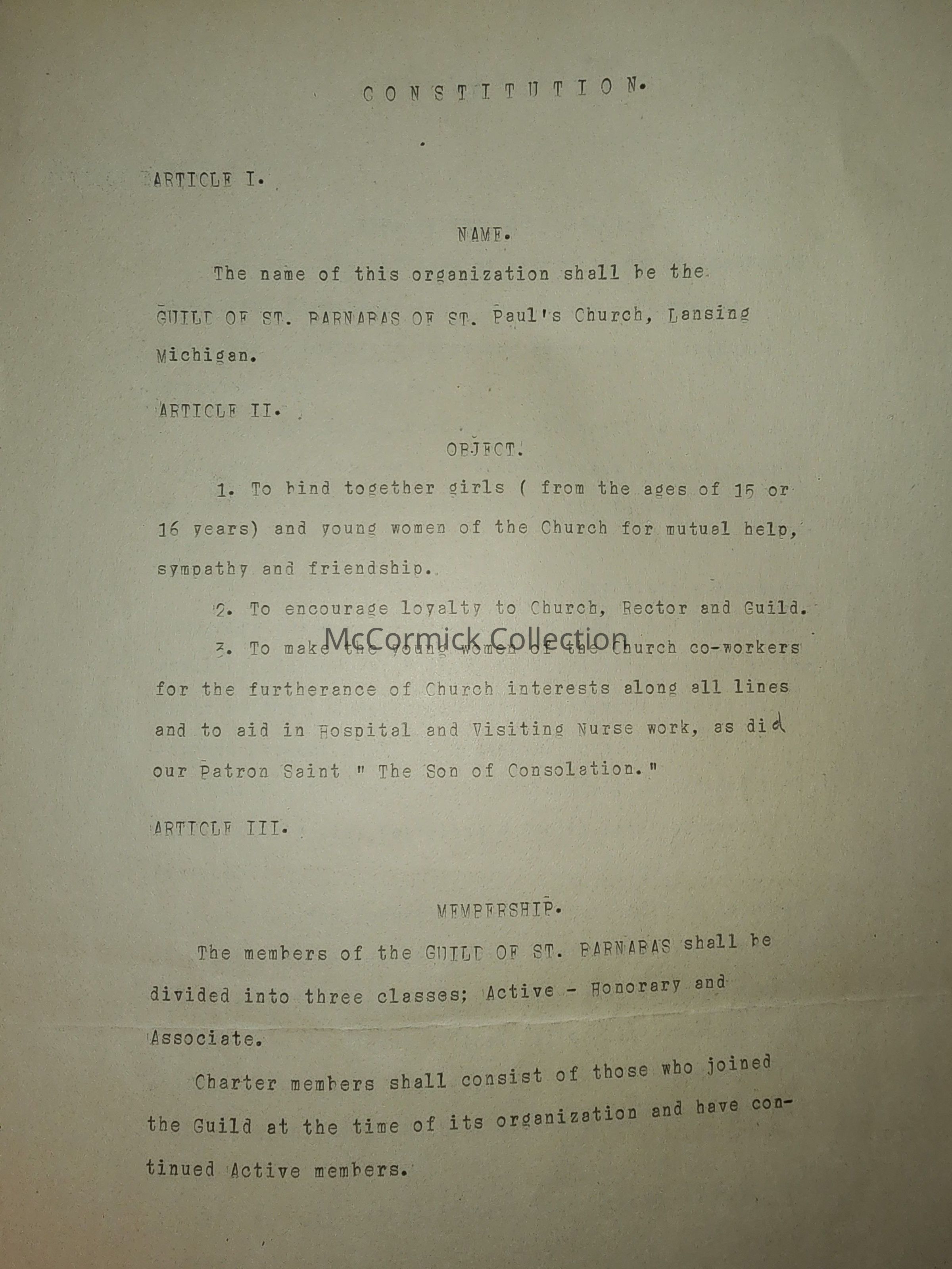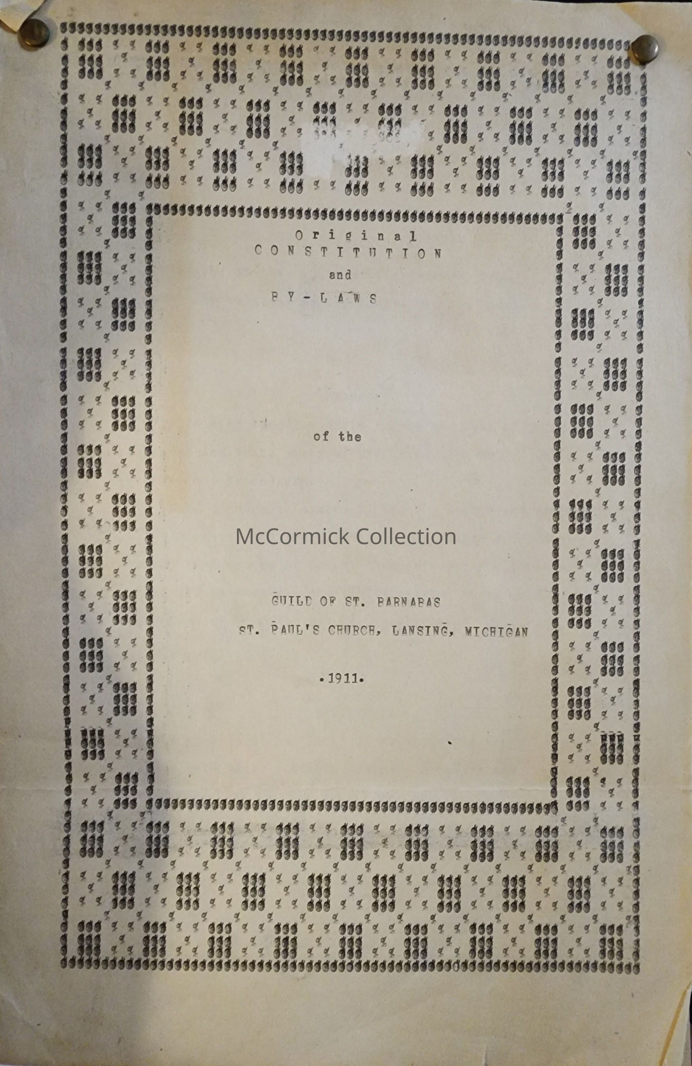 Original Constitution and By-Laws of the Guild of St. Barnabas, St. Paul's Church, Lansing, Michigan, 1911