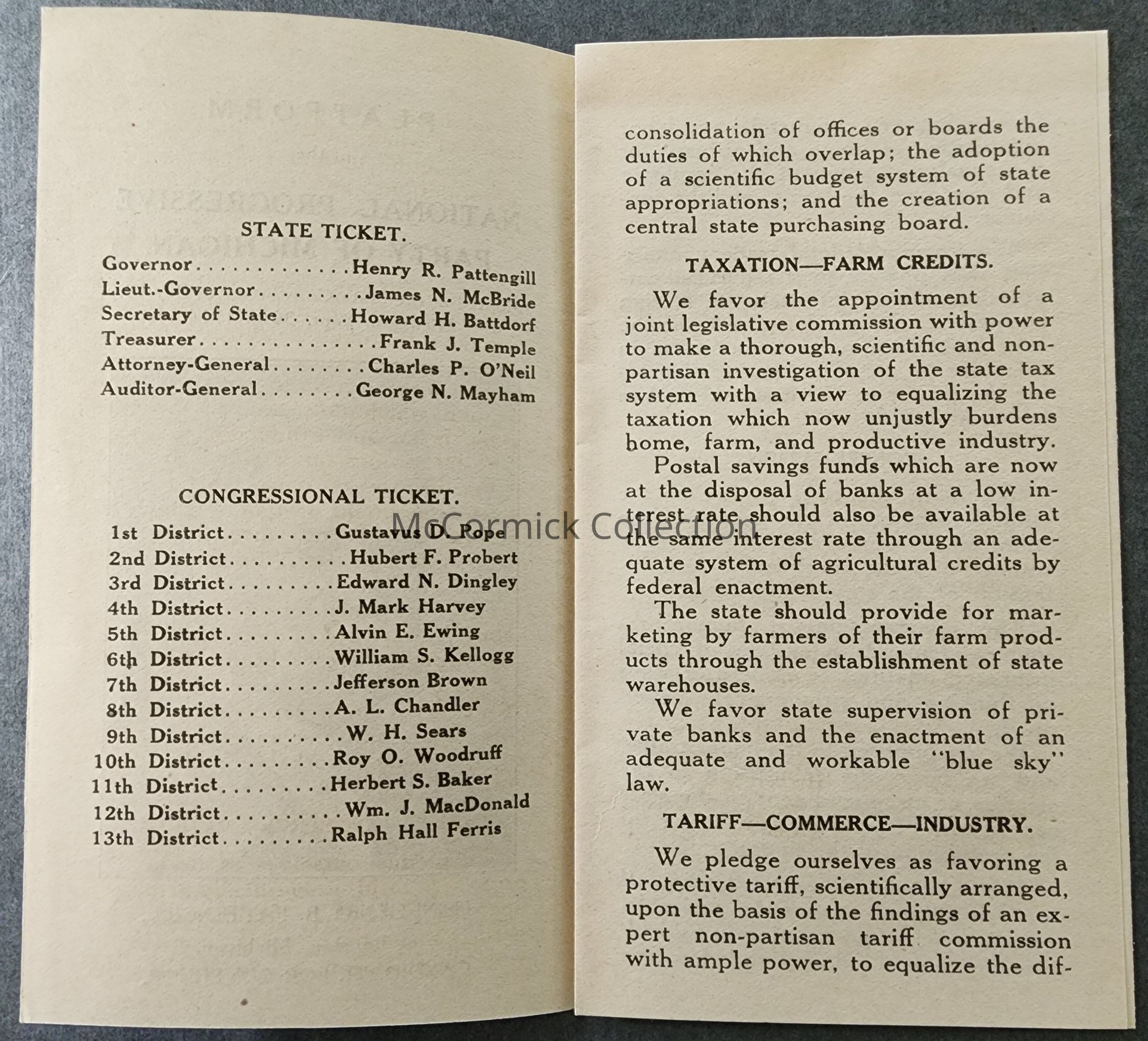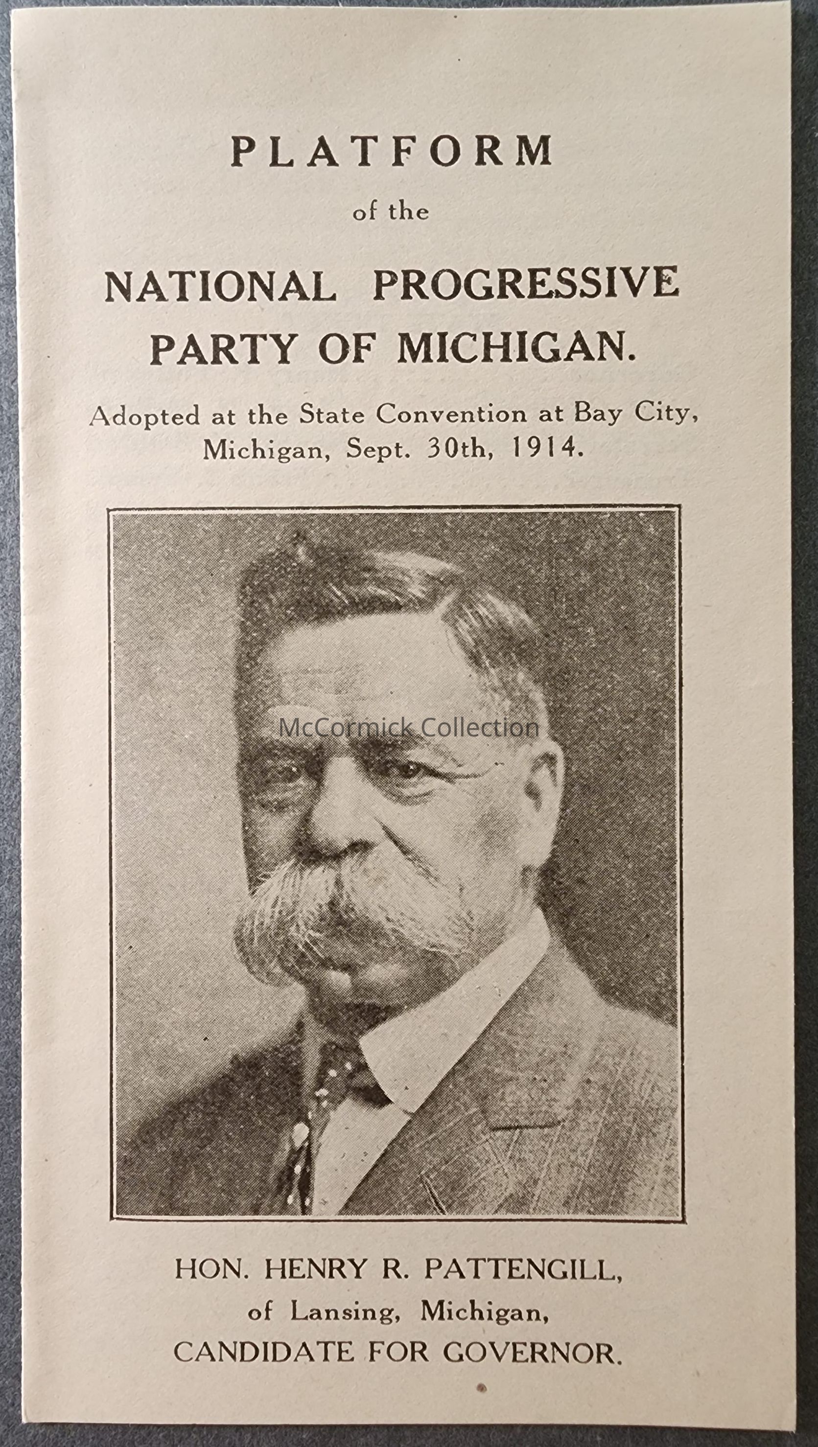 Pattengill National Progressive Party 1914 State Convention Platform Flier