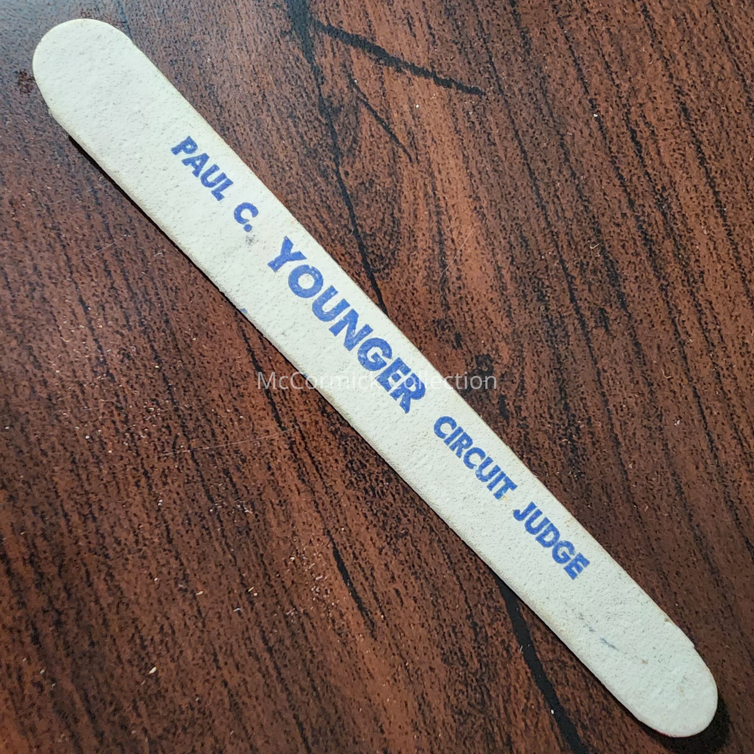 Political campaign emery board for Ingham County's Paul C. Younger for Circuit Court Judge. From Siebert Estate.