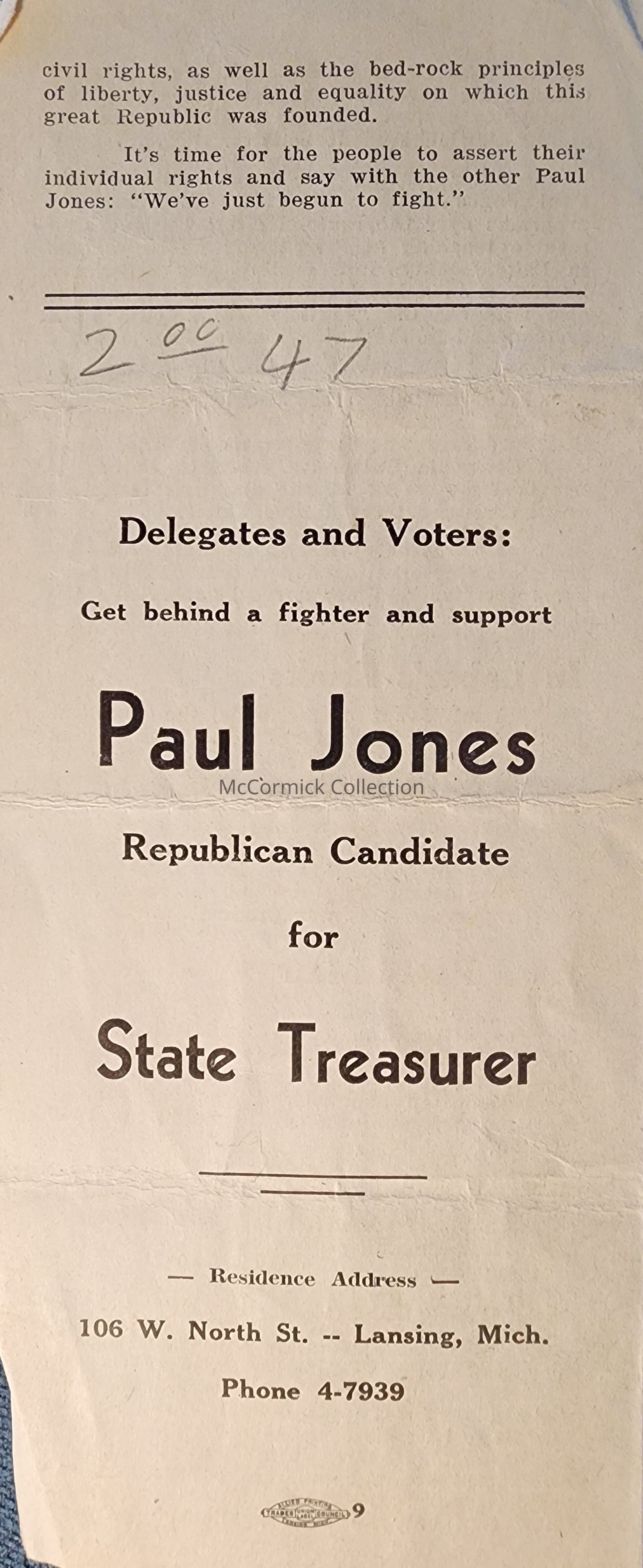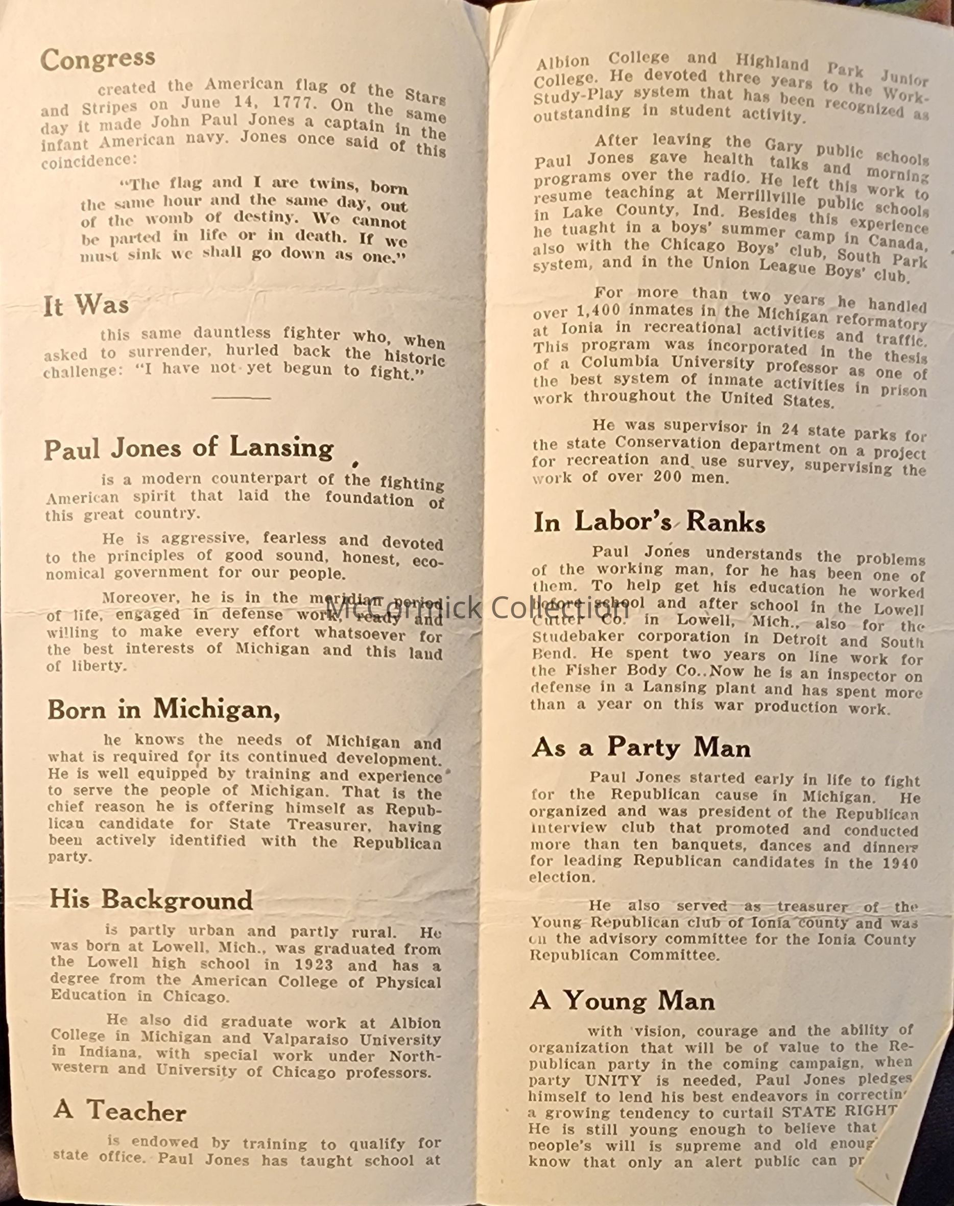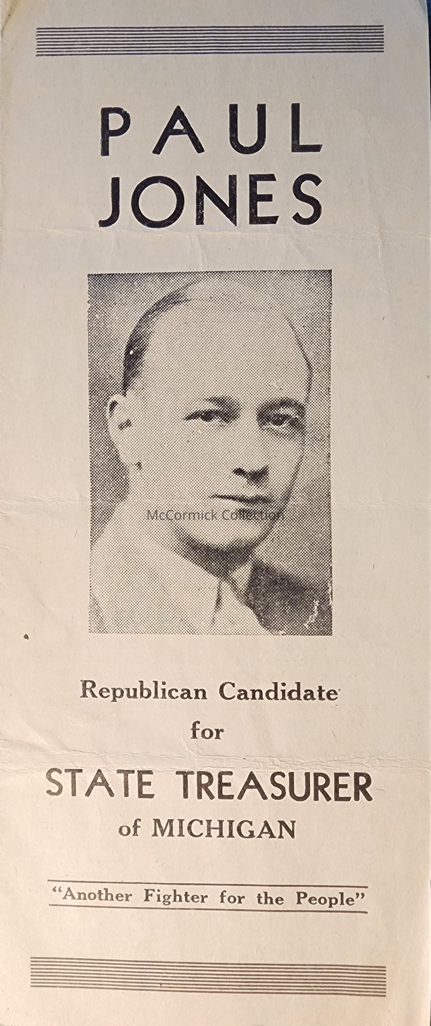 Paul Jones, Republican Candidate for State Treasurer of Michigan, Pamphlet