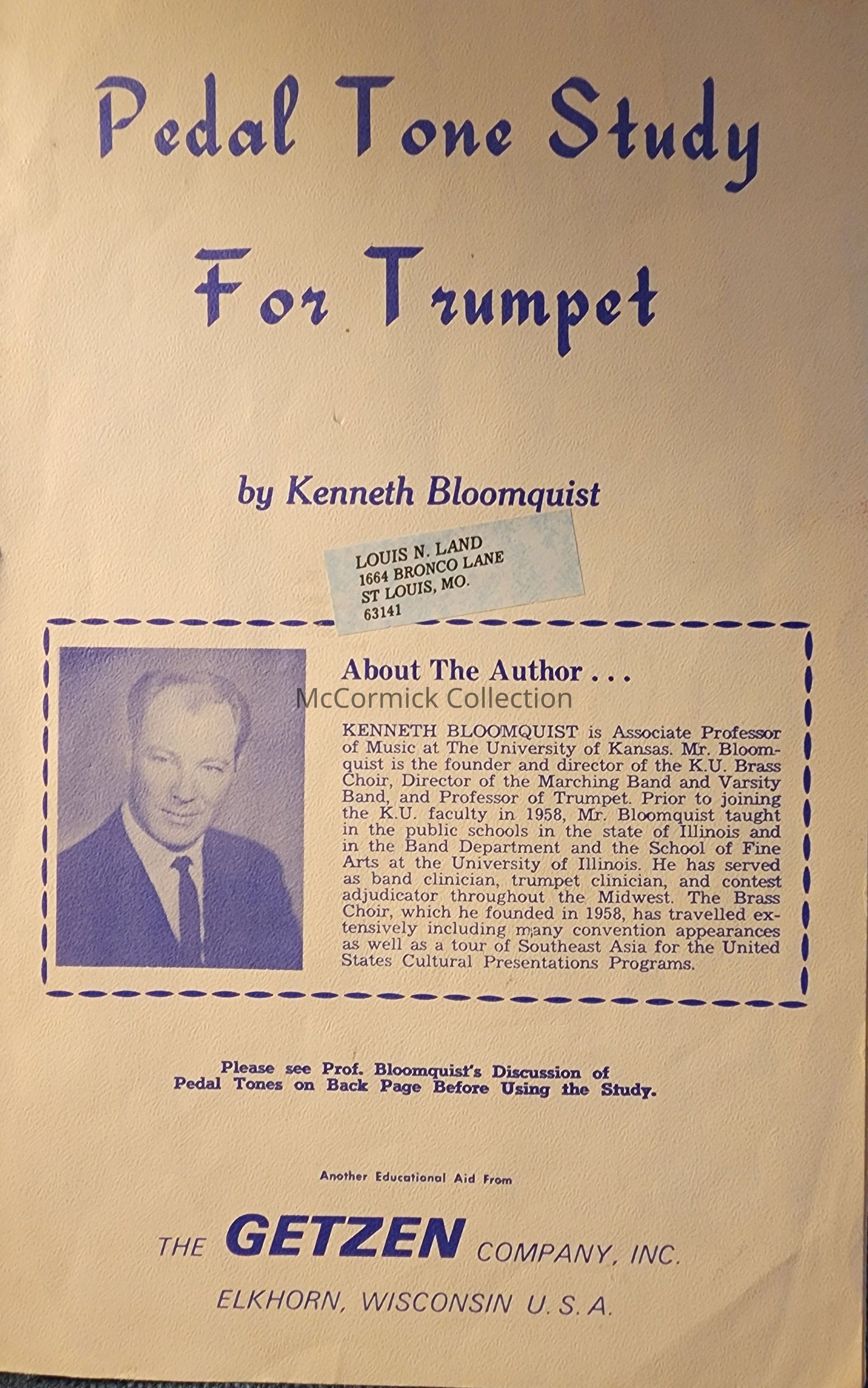 Pedal Tone Study for Trumpet by Bloomquist