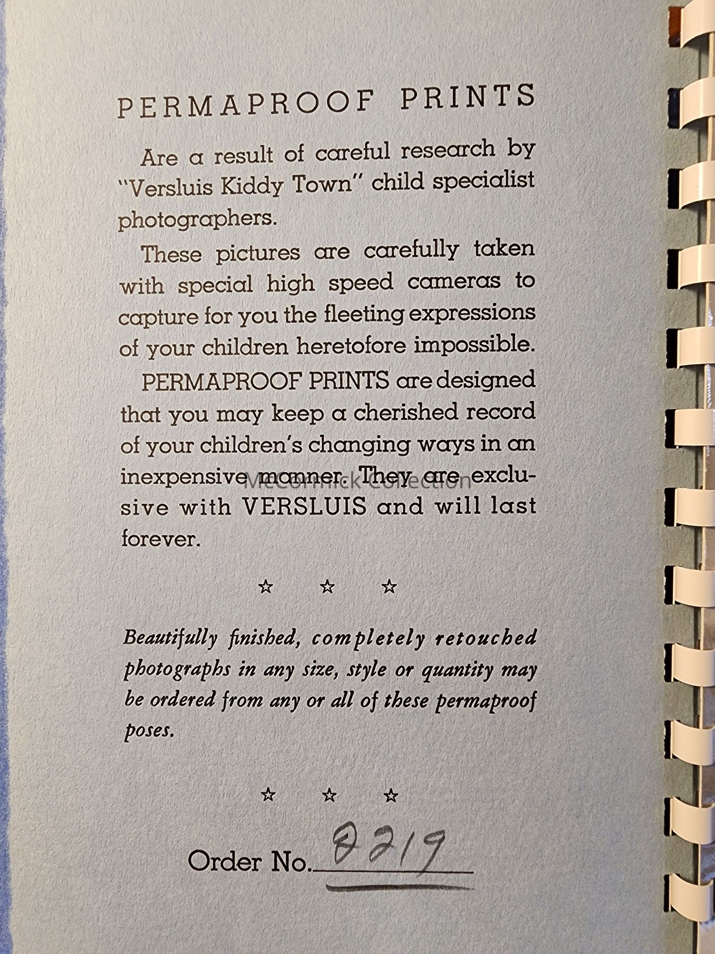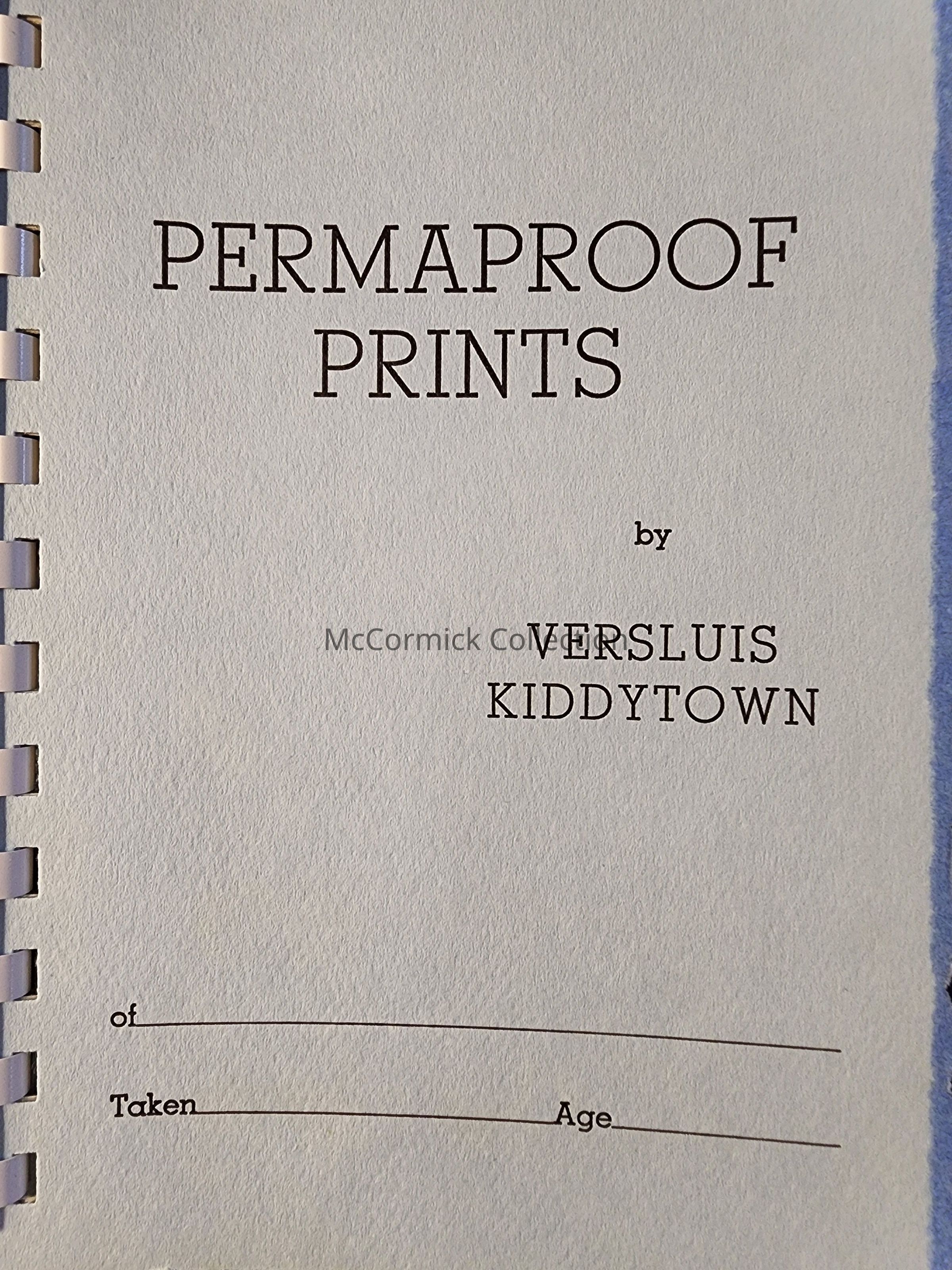Blue paper folder for proofs taken by Lansing photographer Versluis Kiddytown.