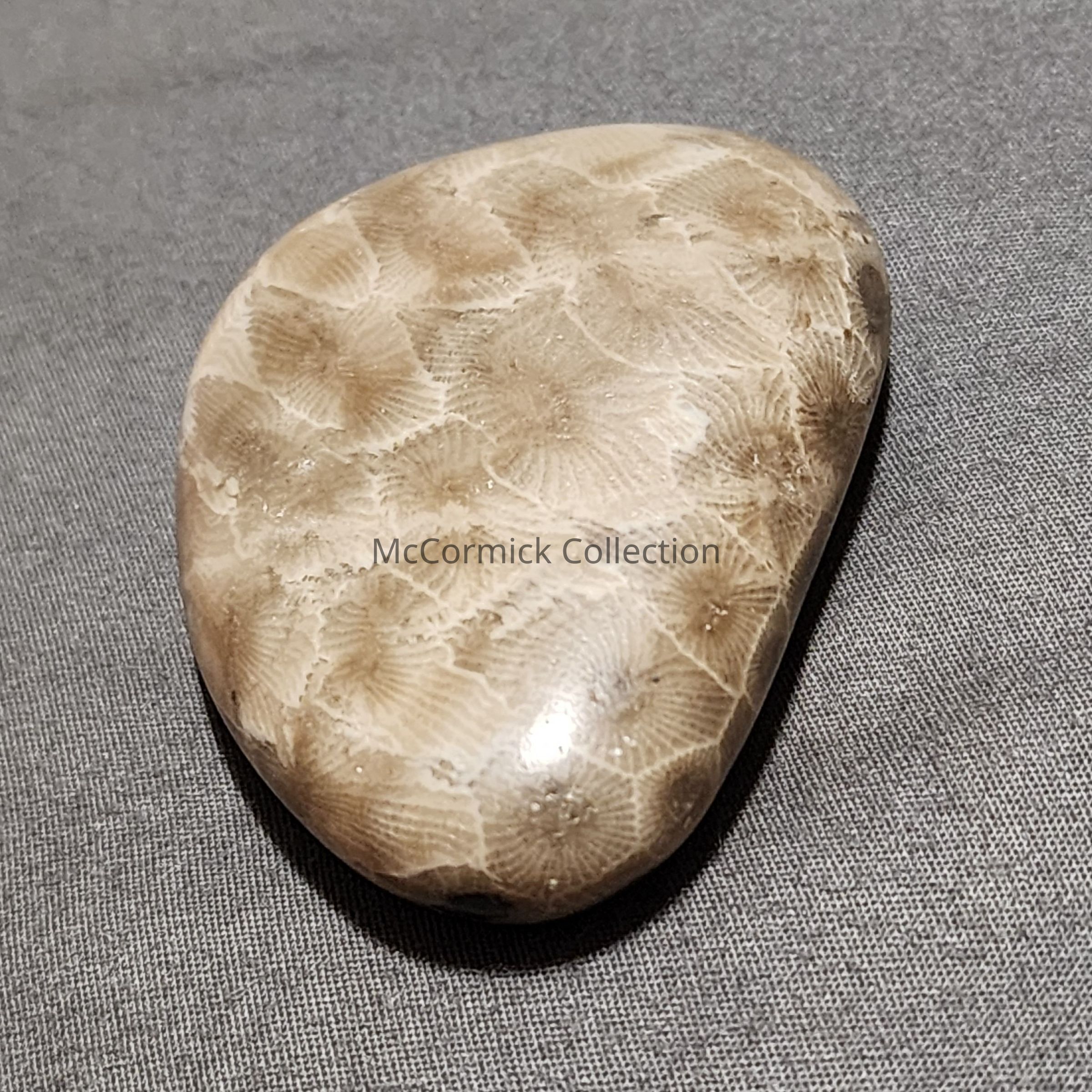 Polished Petoskey Stone purchased in Houghton, Michigan, and found locally in the Keweenaw Peninsula in Michigan's Upper Peninsula. The Petoskey Stone is Michigan's state Stone.