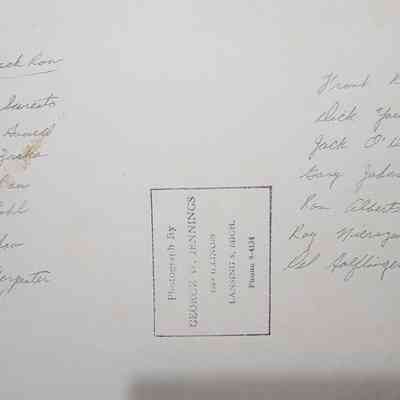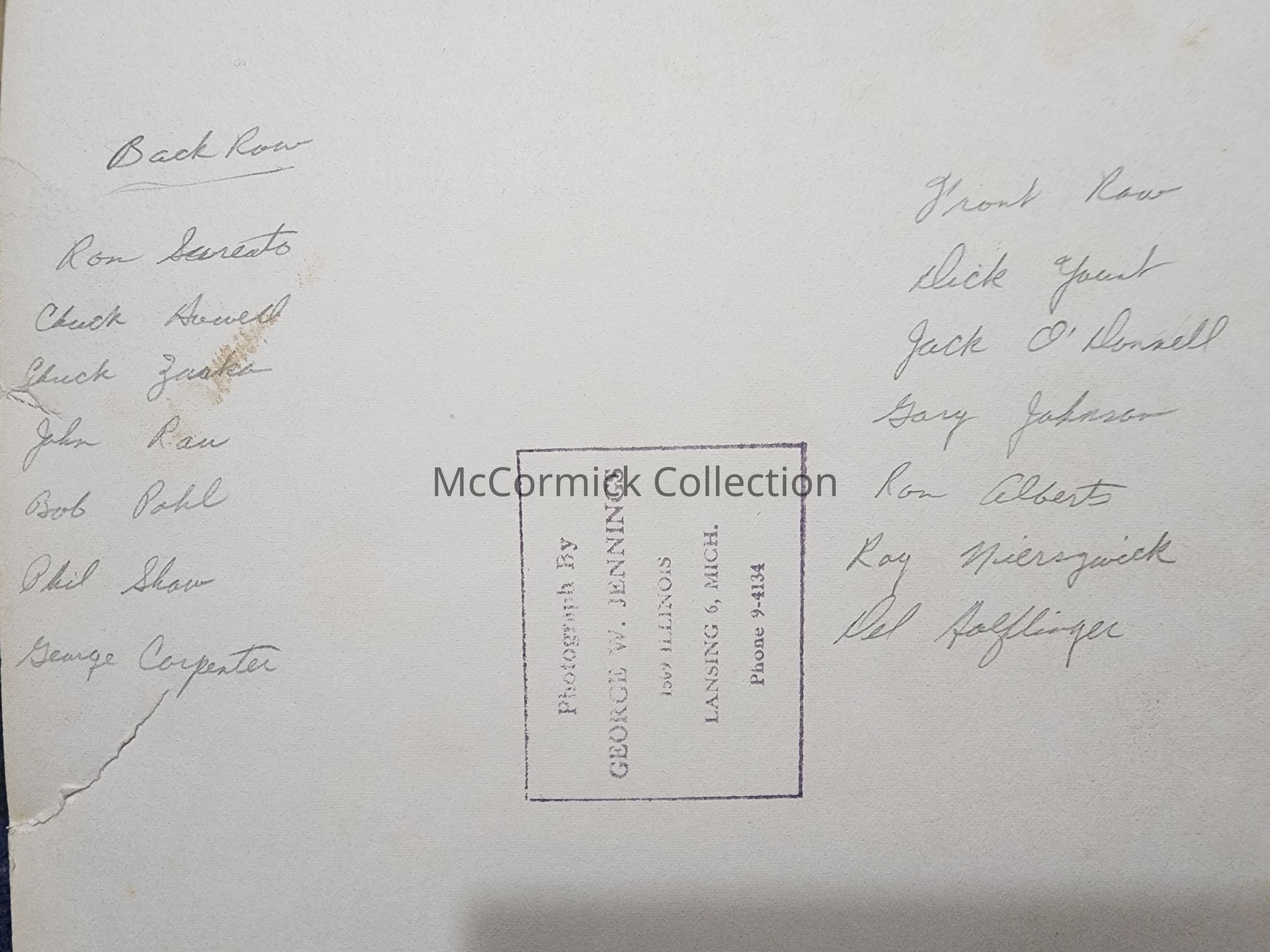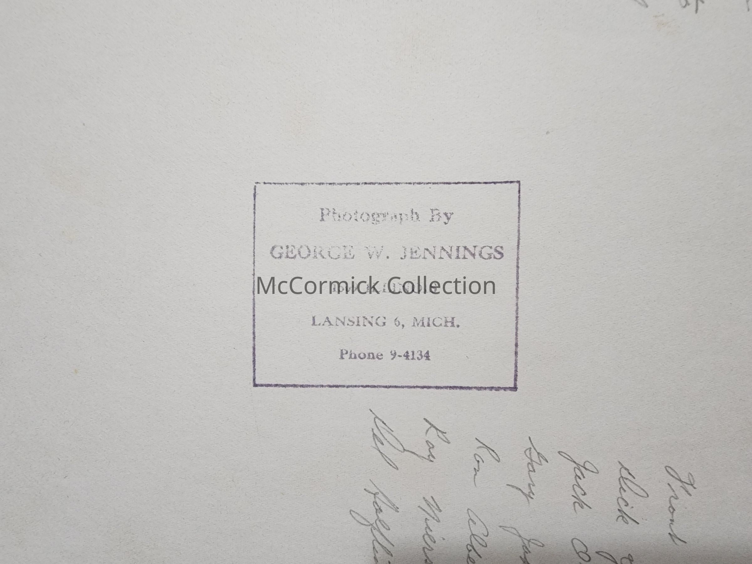 Photographic print of a Pfeiffer Beer baseball team in Lansing, Michigan, by Lansing photographer George Jennings. Identified on back.