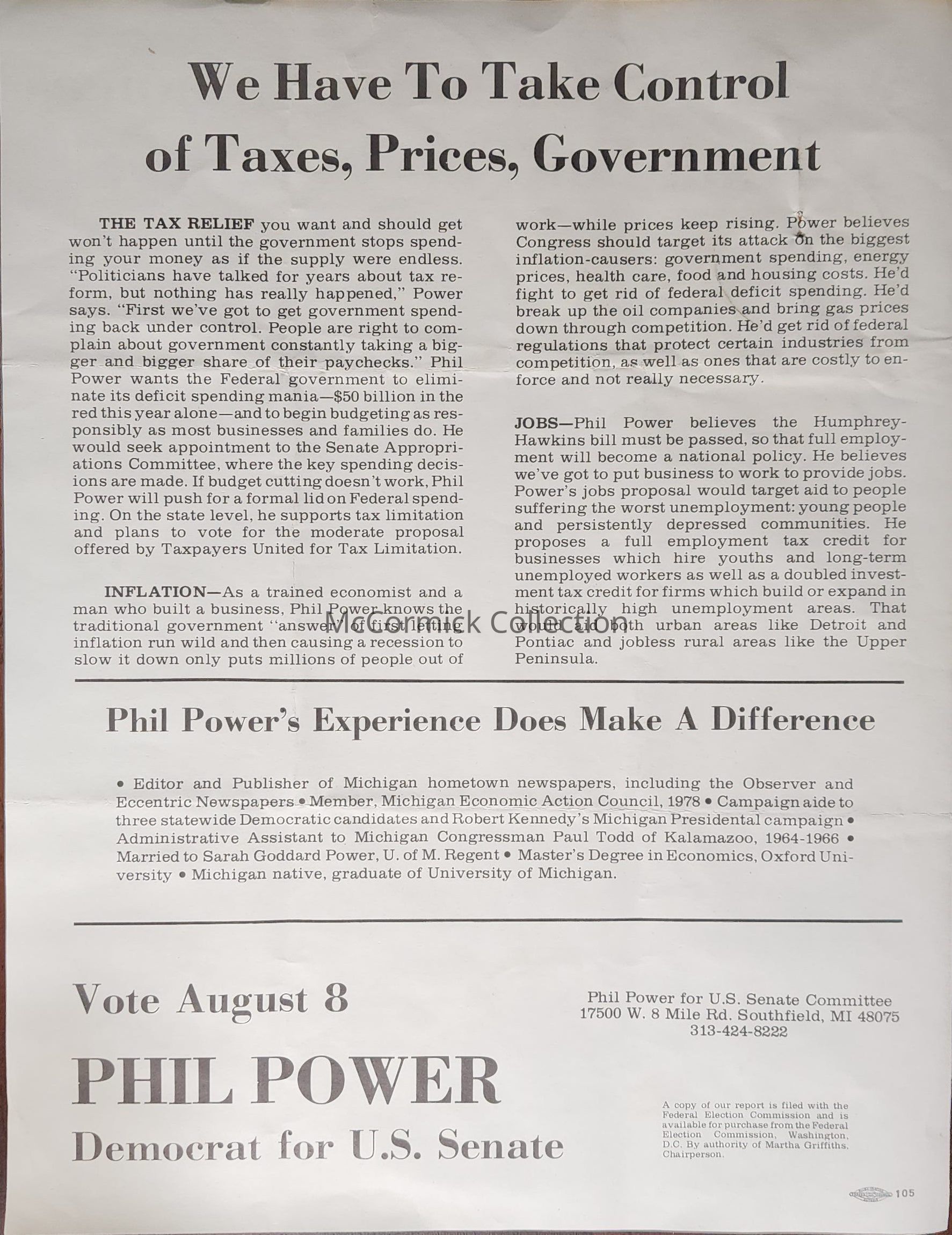 A 1970s campaign flier for Phil Power for U.S. Senate.