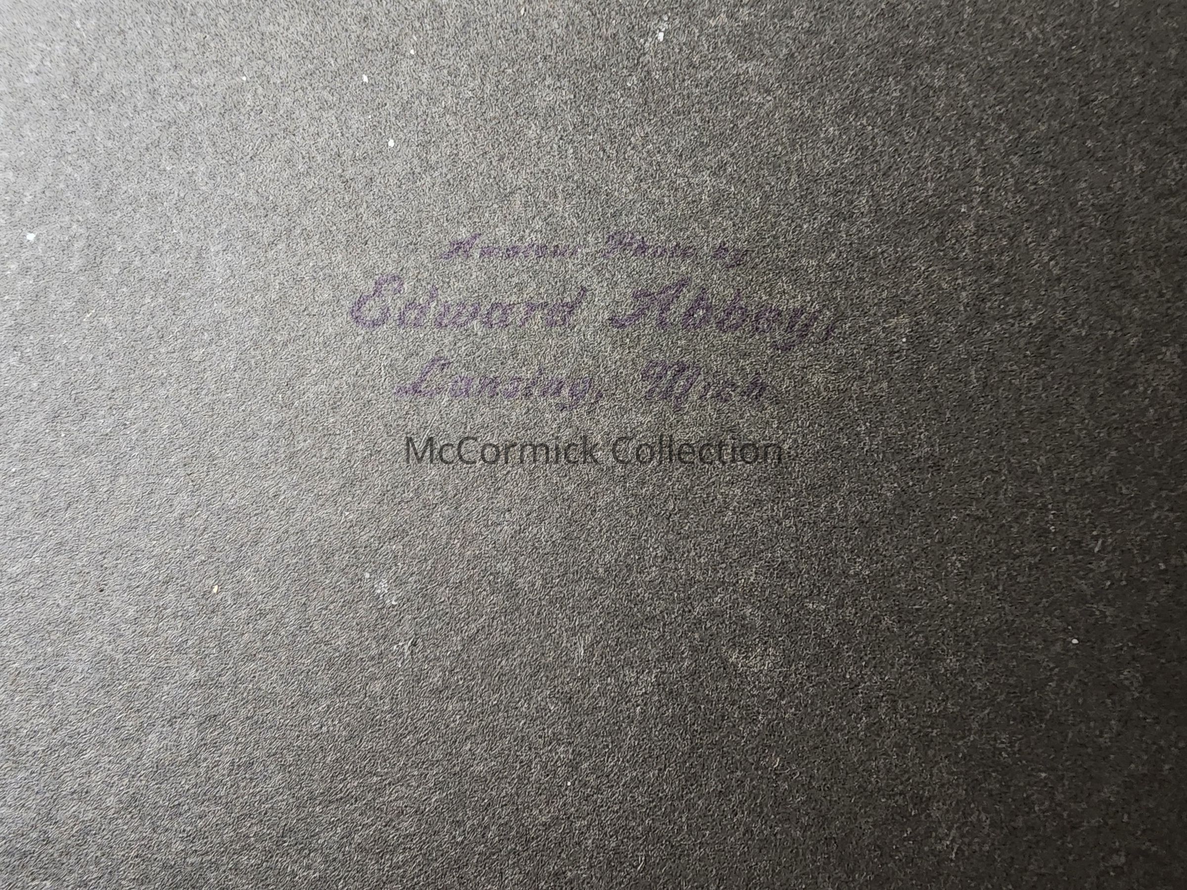 Card mounted photograph of Pine Lake showing the Izzer. Taken by amateur Lansing photographer Edward Abbey.