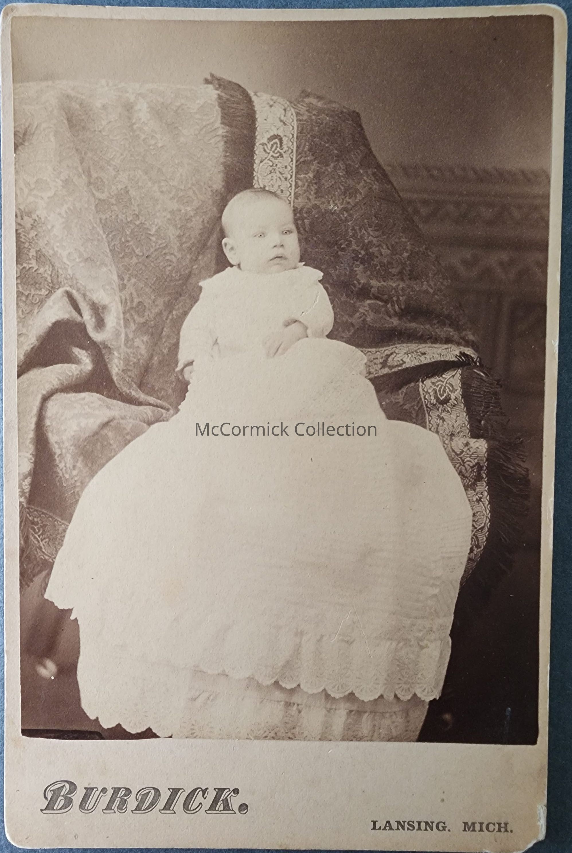 Cabinet card photograph of an unidentified child by Lansing photographer Burdick, circa 1880-83.