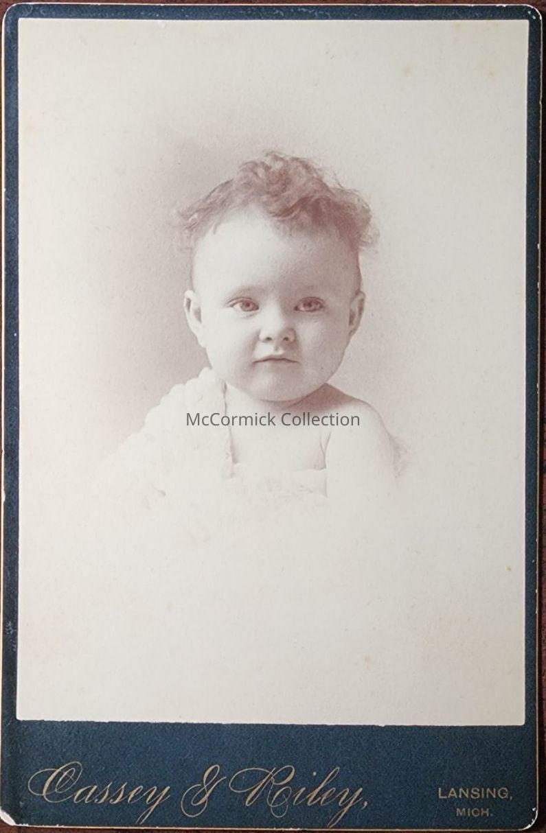 Cabinet card photograph of an unidentified child by Lansing photographer Cassey and Riley.