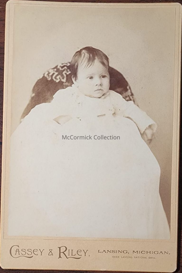Cabinet card photograph of an unidentified child by Lansing photographer Cassey and Riley.