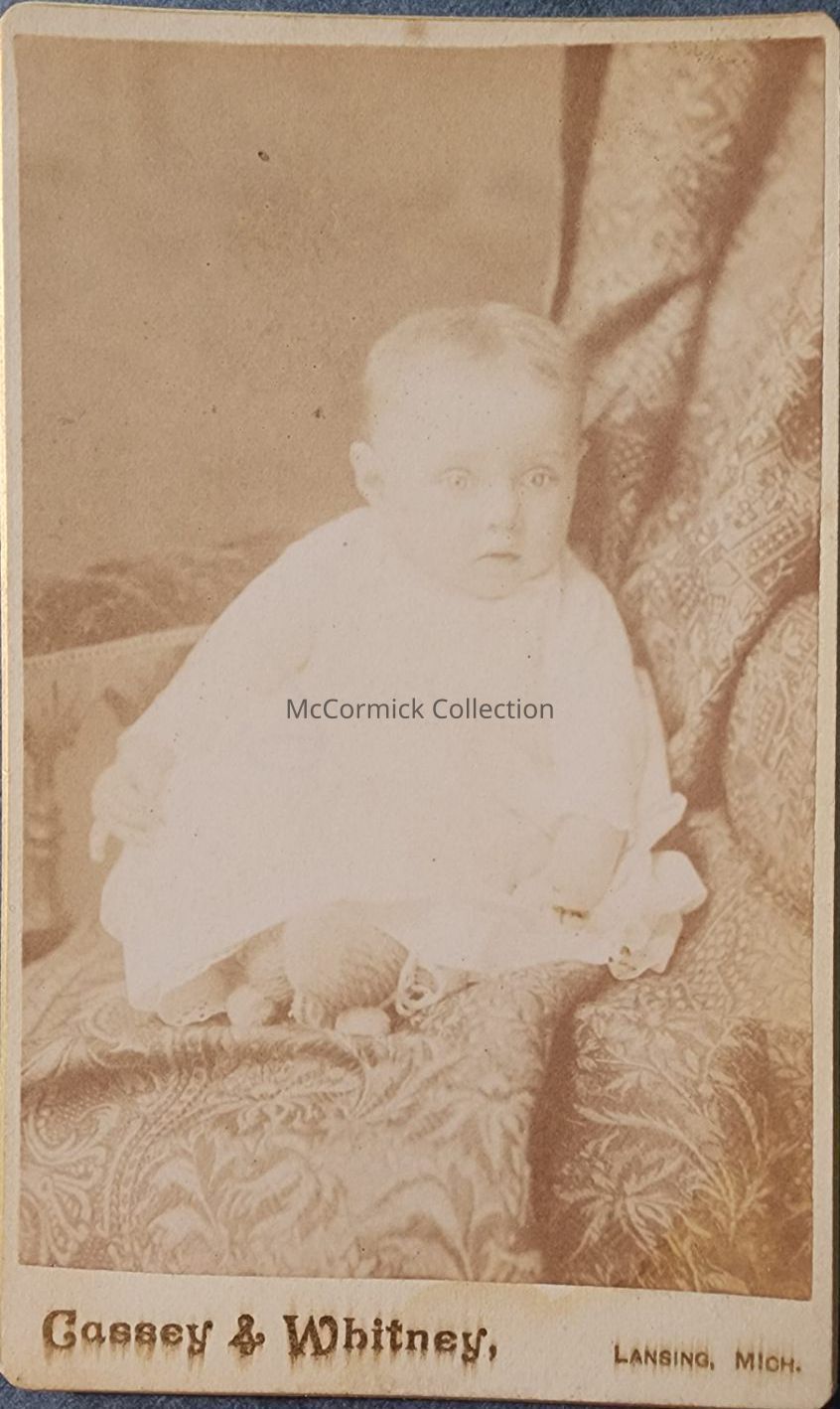 Carte de visite photograph of an unidentified child by Lansing photographer Cassey and Whitney. From an album purchased at a Mason, Michigan estate.