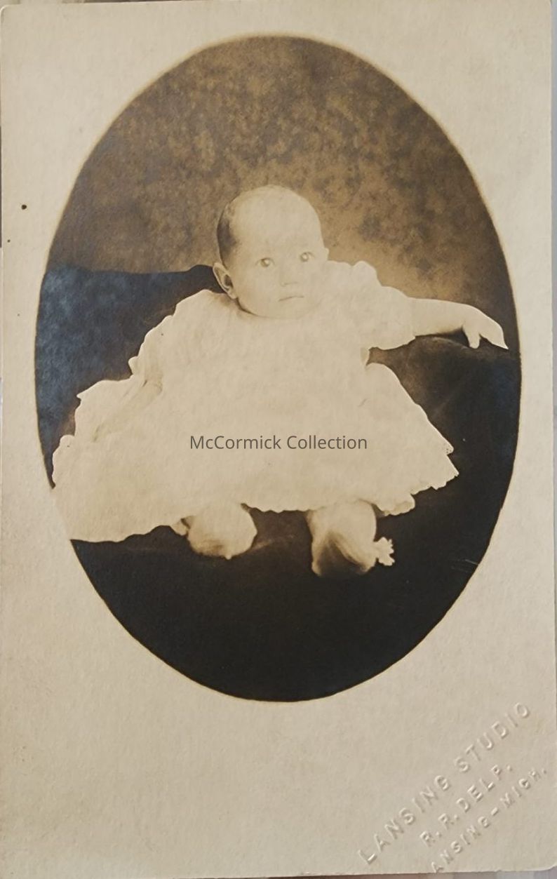 Real photo postcard of an unidentified child by Lansing photographer Lansing Studio, R.R. Delp.