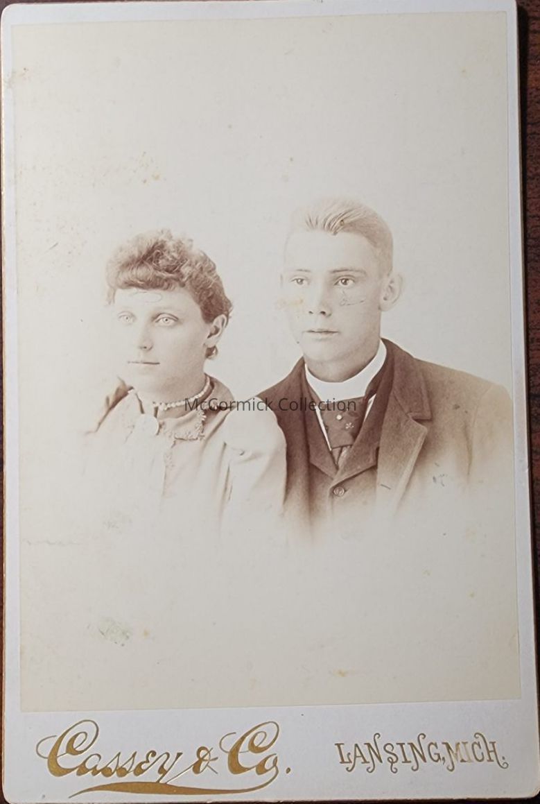 Cabinet card photograph of an unidentified couple by Lansing photographer Cassey and Co.