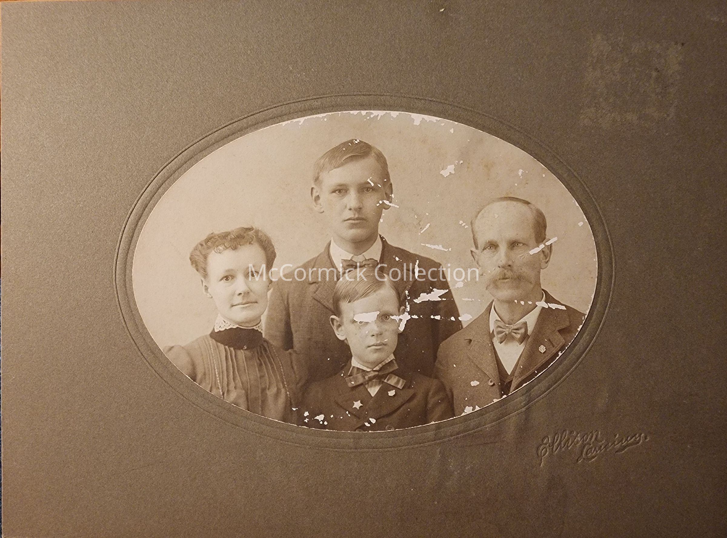 Card mounted photograph of an unidentified family by Lansing photographer Ellison. Written on the back is "Feb 14 - 1903 / Clyde." From the Severance family collection.