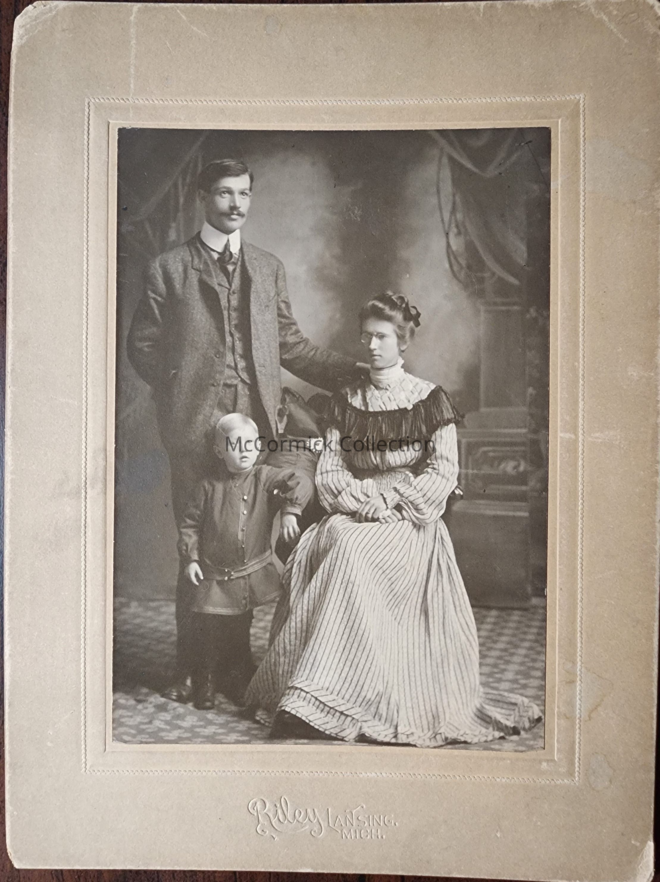 Portrait Photograph of an unidentified family by Lansing photographer Riley. From Siebert Estate.