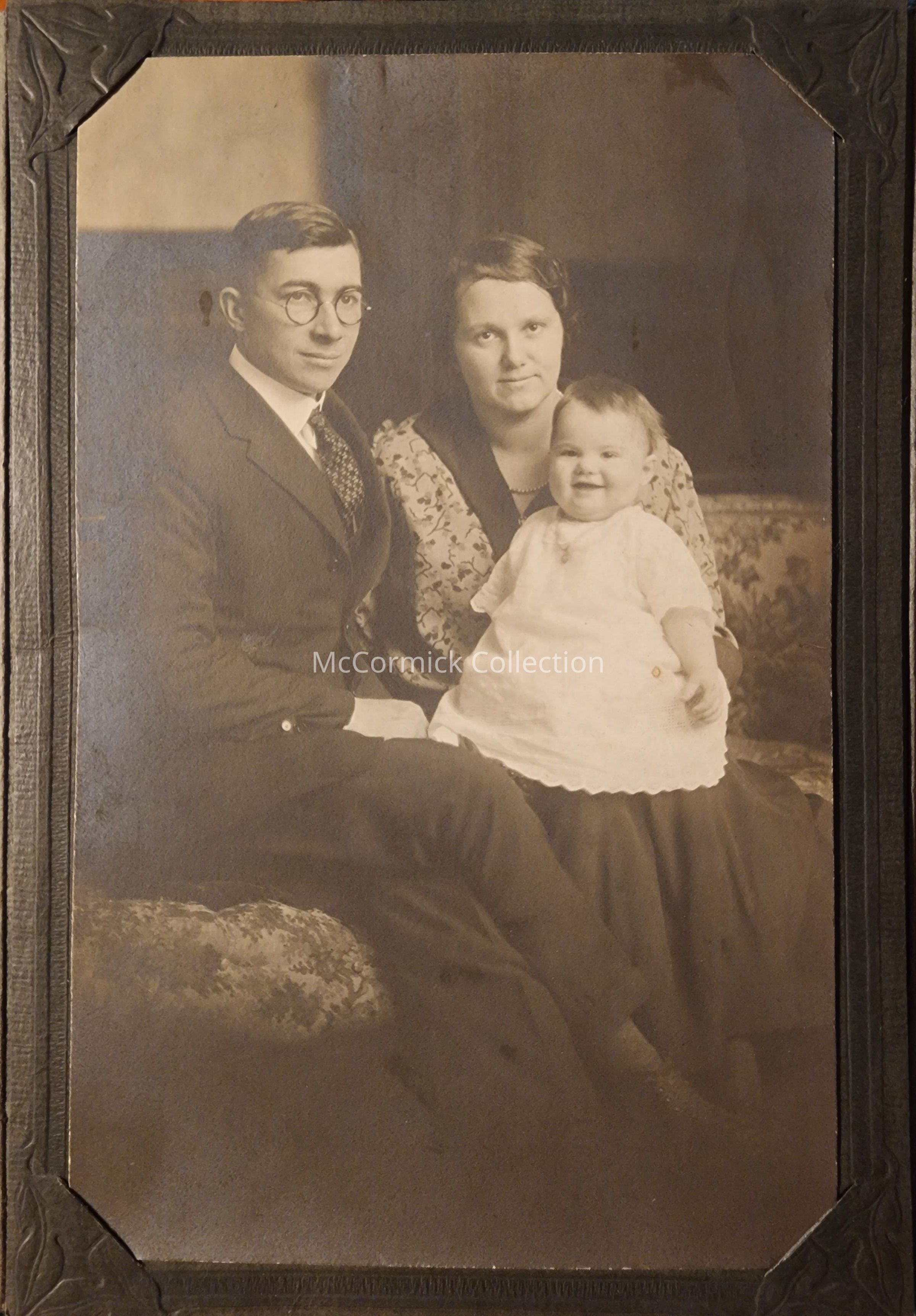 Folder frame mounted photograph of an unidentified family by Lansing photographer Ellison.