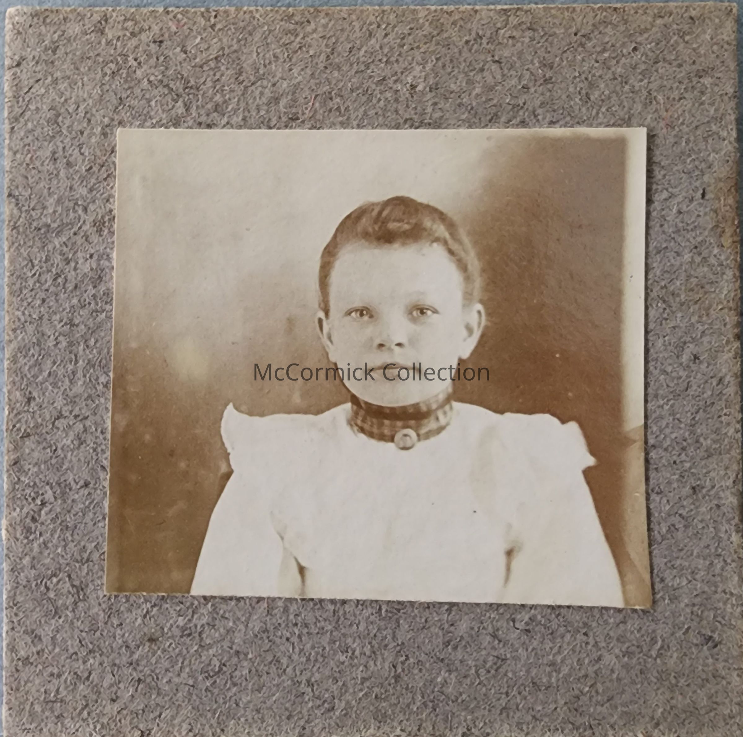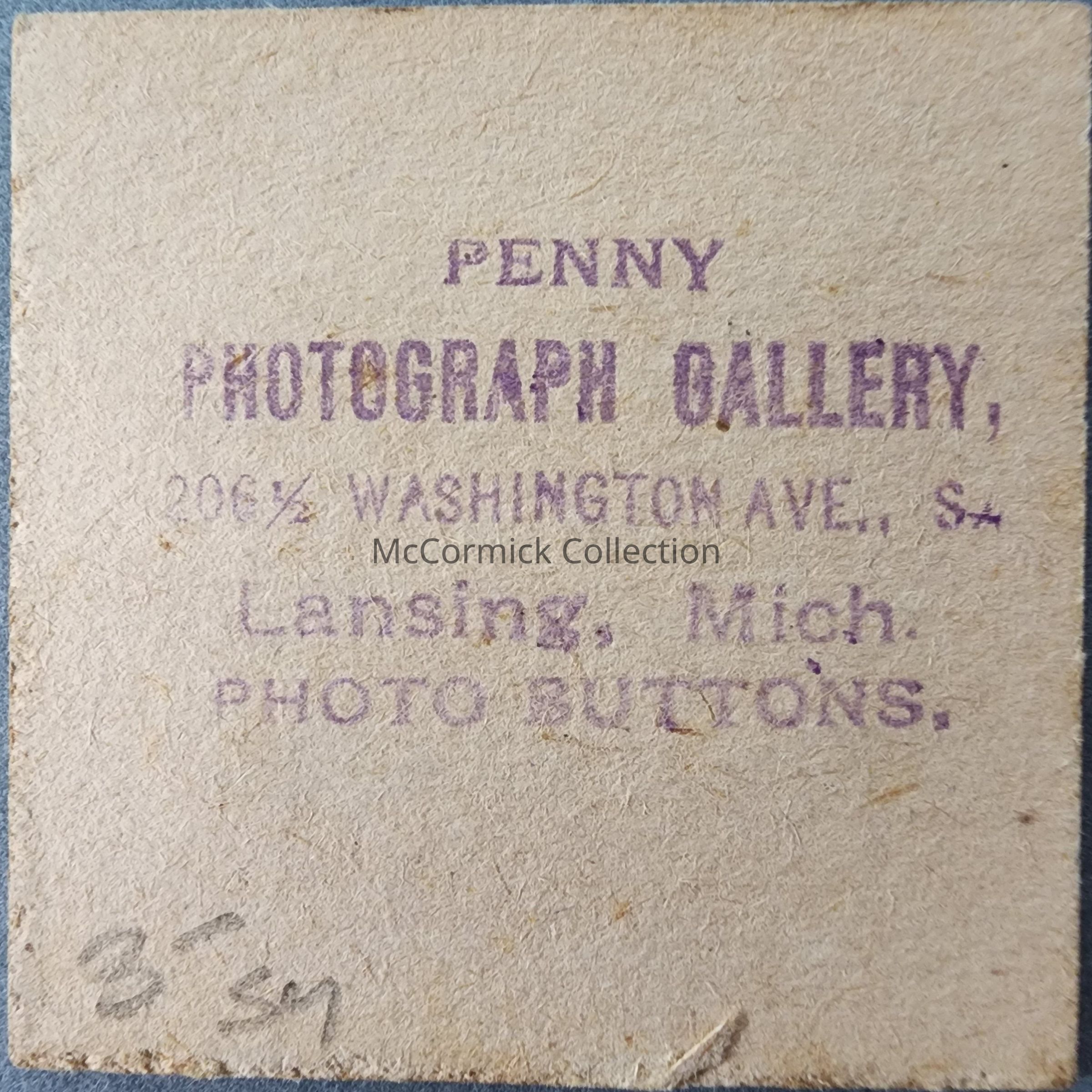 Small card mounted photograph of an unidentified girl by Lansing photographer Penny Photograph Gallery.