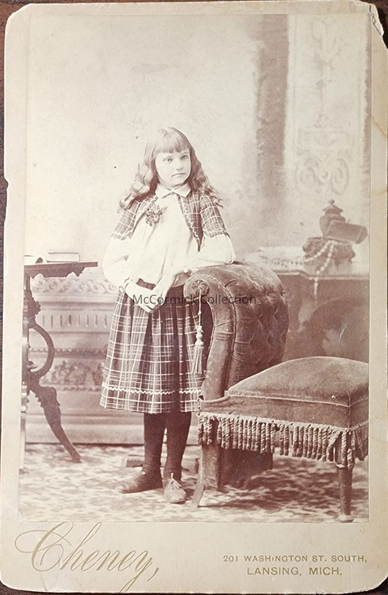 Cabinet card photograph of an unidentified girl by Lansing photographer Cheney.