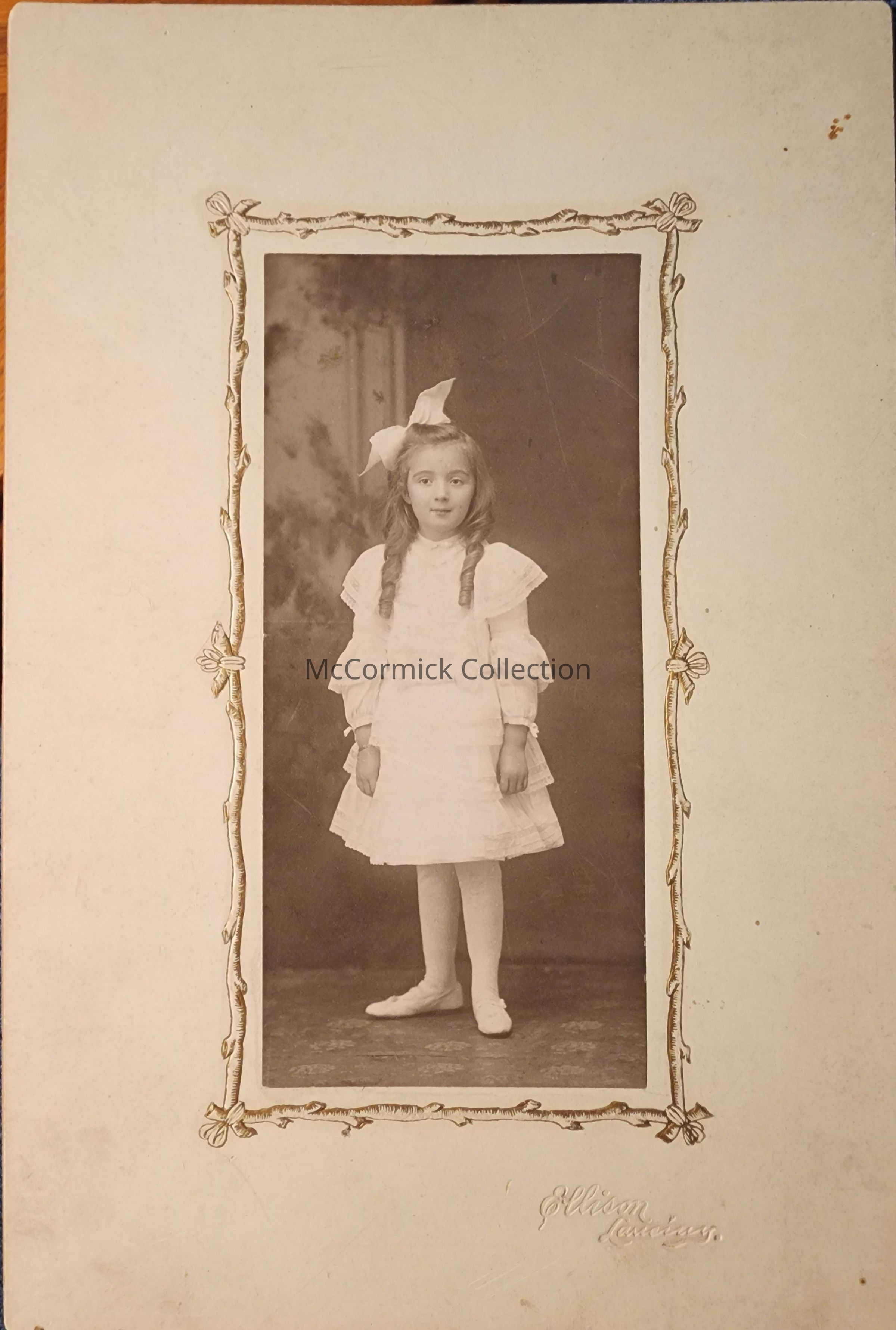 Card mounted photograph of an unidentified child by Lansing photographer Ellison. Two copies.
