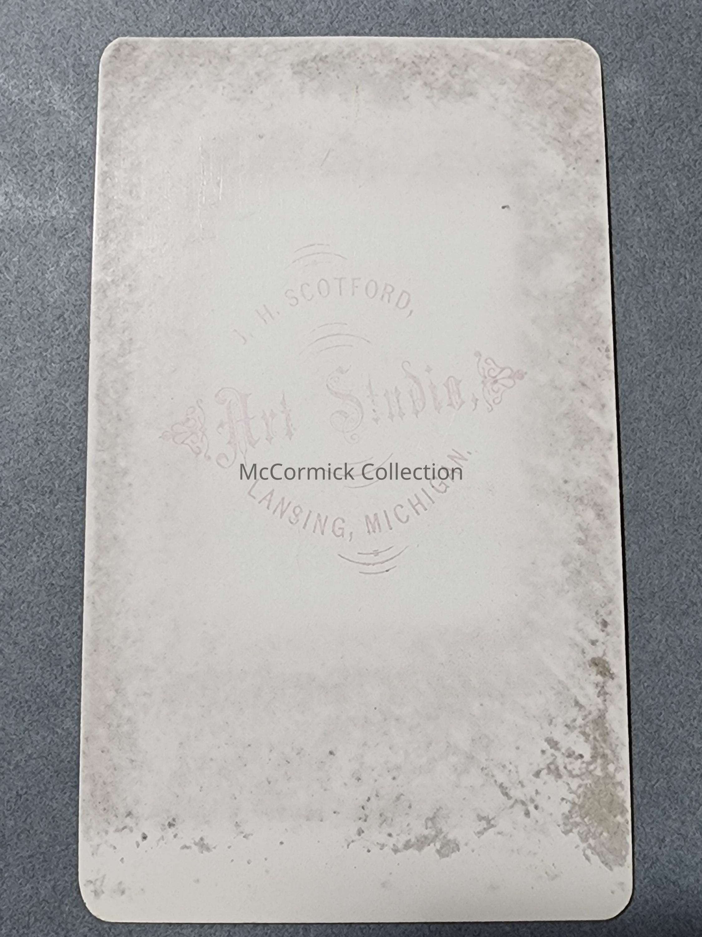 Carte de visite photograph of an unknown girl by Lansing photographer John Harvey Scotford. Circa 1877-81.
