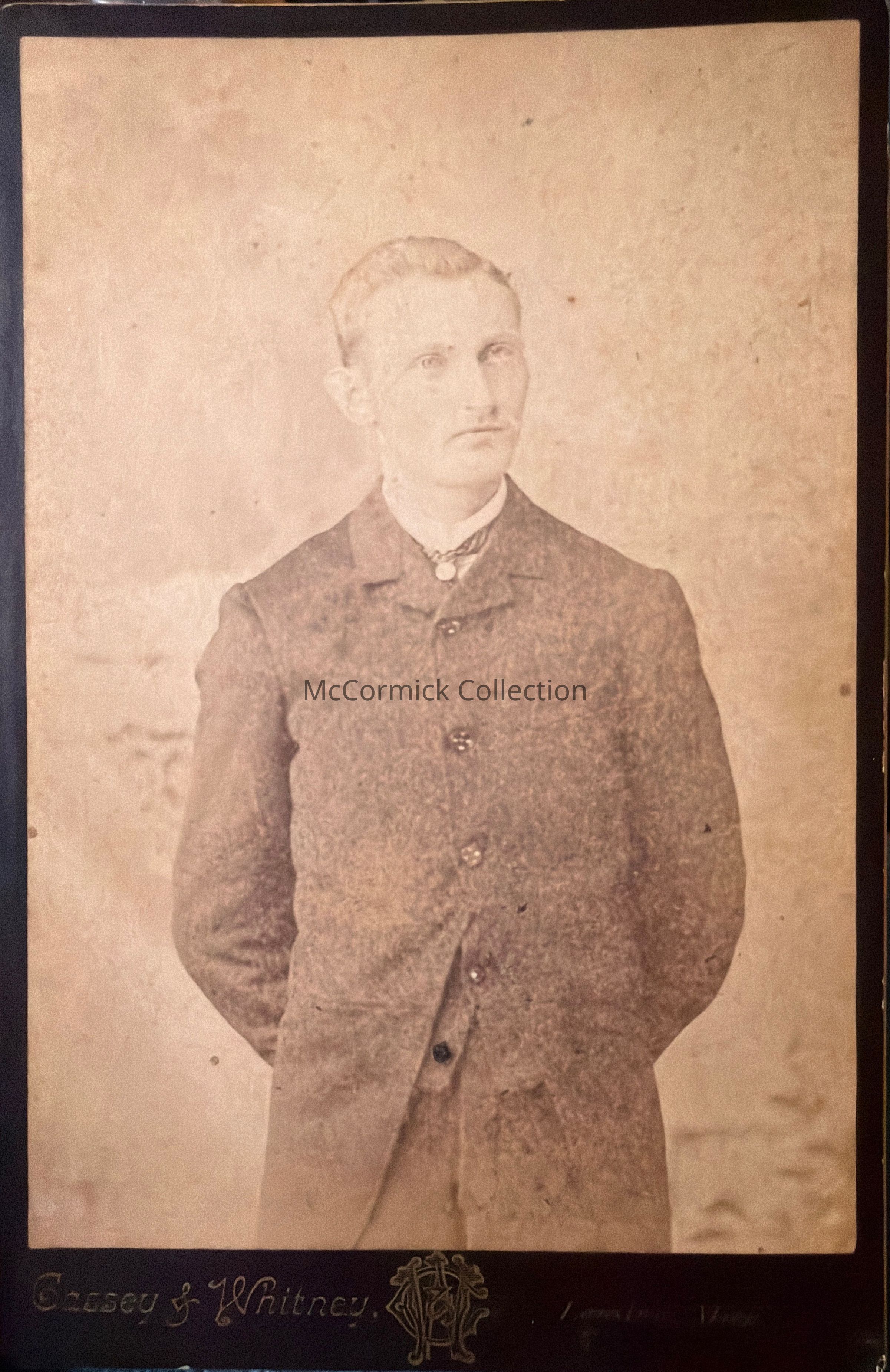 Cabinet card photograph of an unidentified man by Lansing photographer Cassey and Whitney.