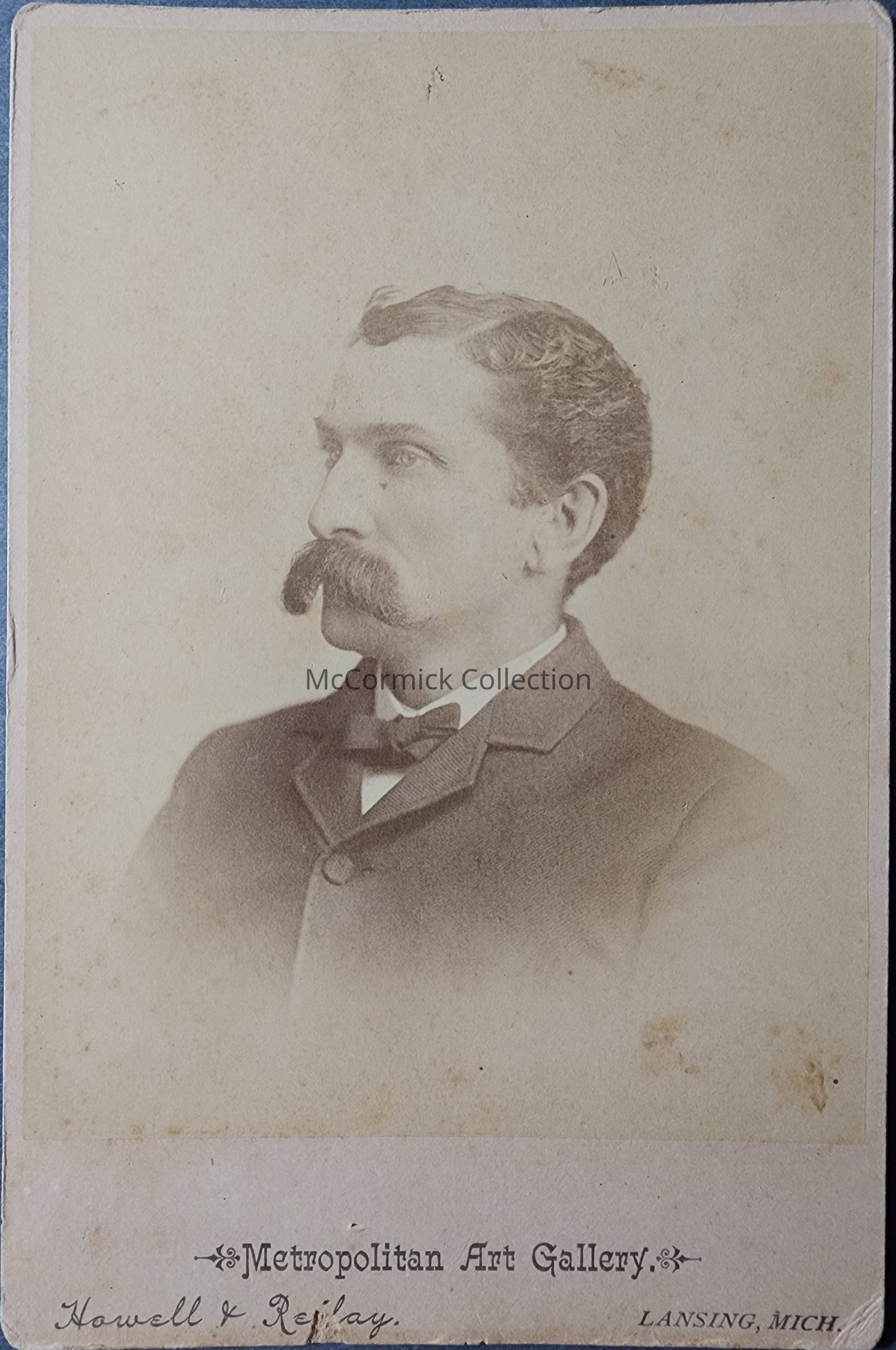 Cabinet card photograph of an unidentified man by Lansing photographer Howell and Reilay, Metropolitan Art Gallery.