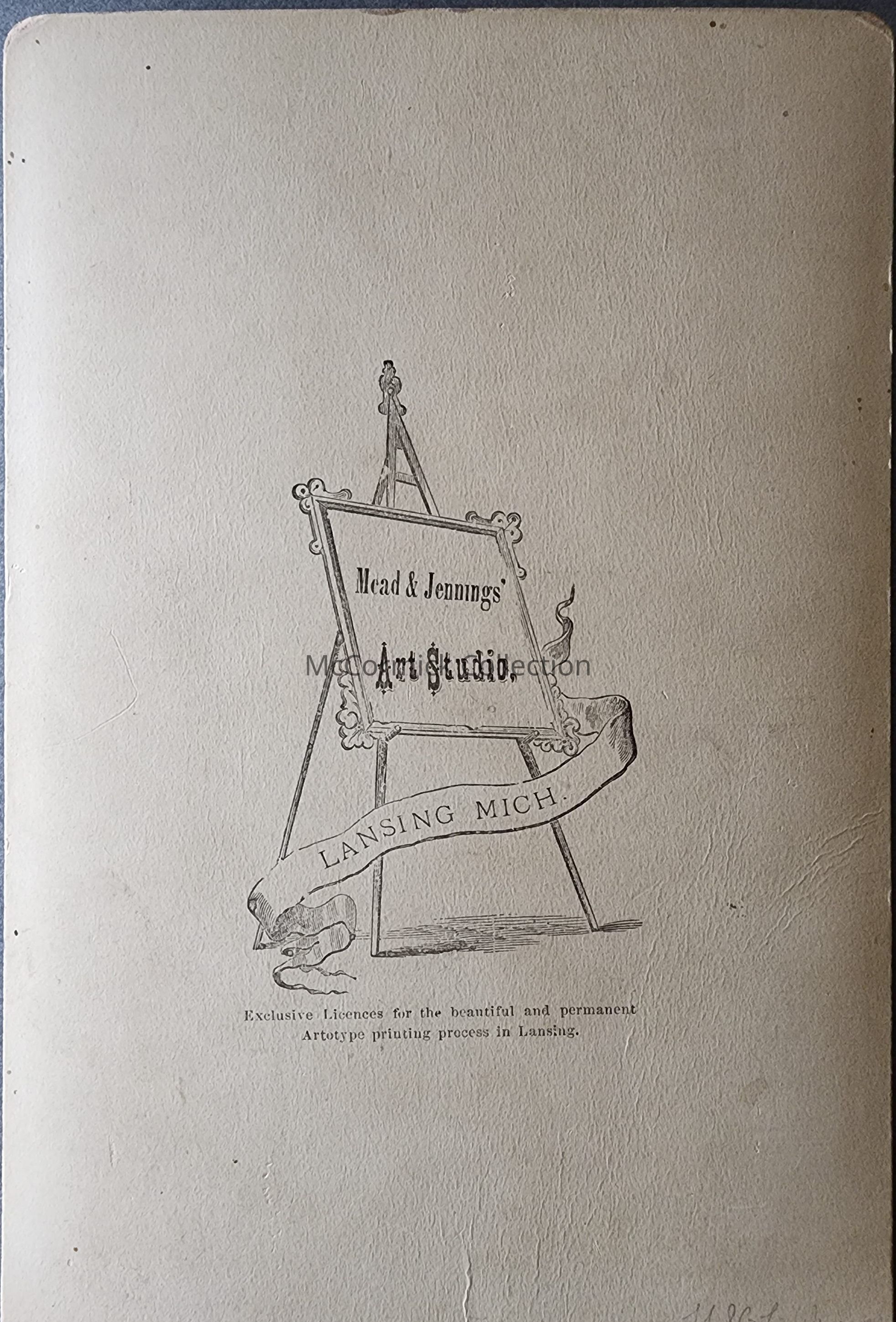 Cabinet card photograph of an unidentified man by Lansing photographer Mead and Jennings.