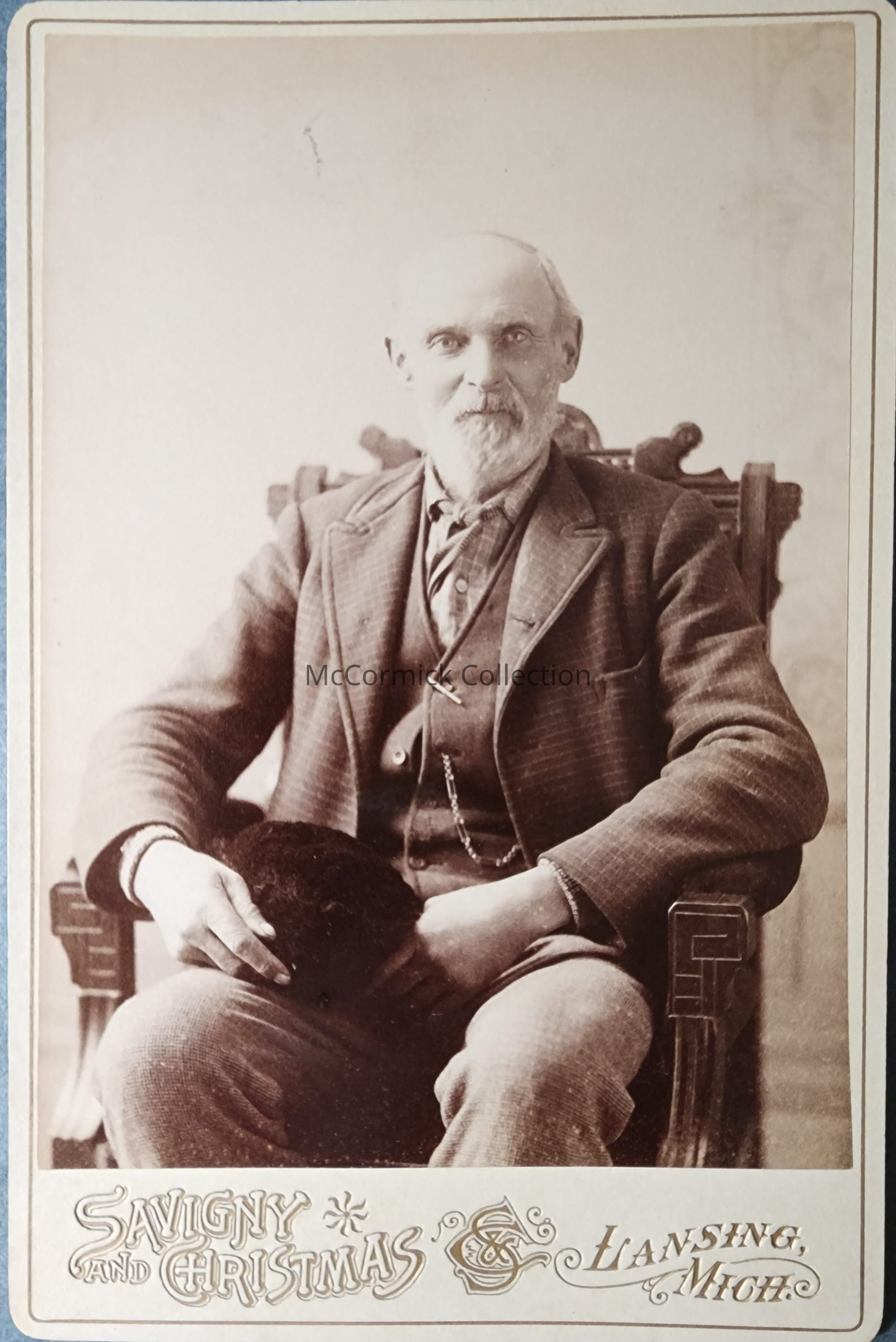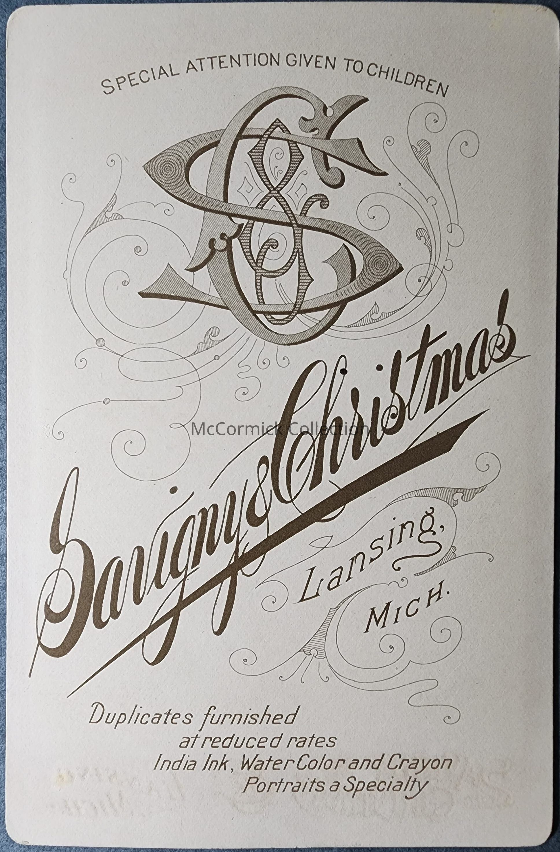 Cabinet card photograph of an unidentified man by Lansing photographer Savigny and Christmas.