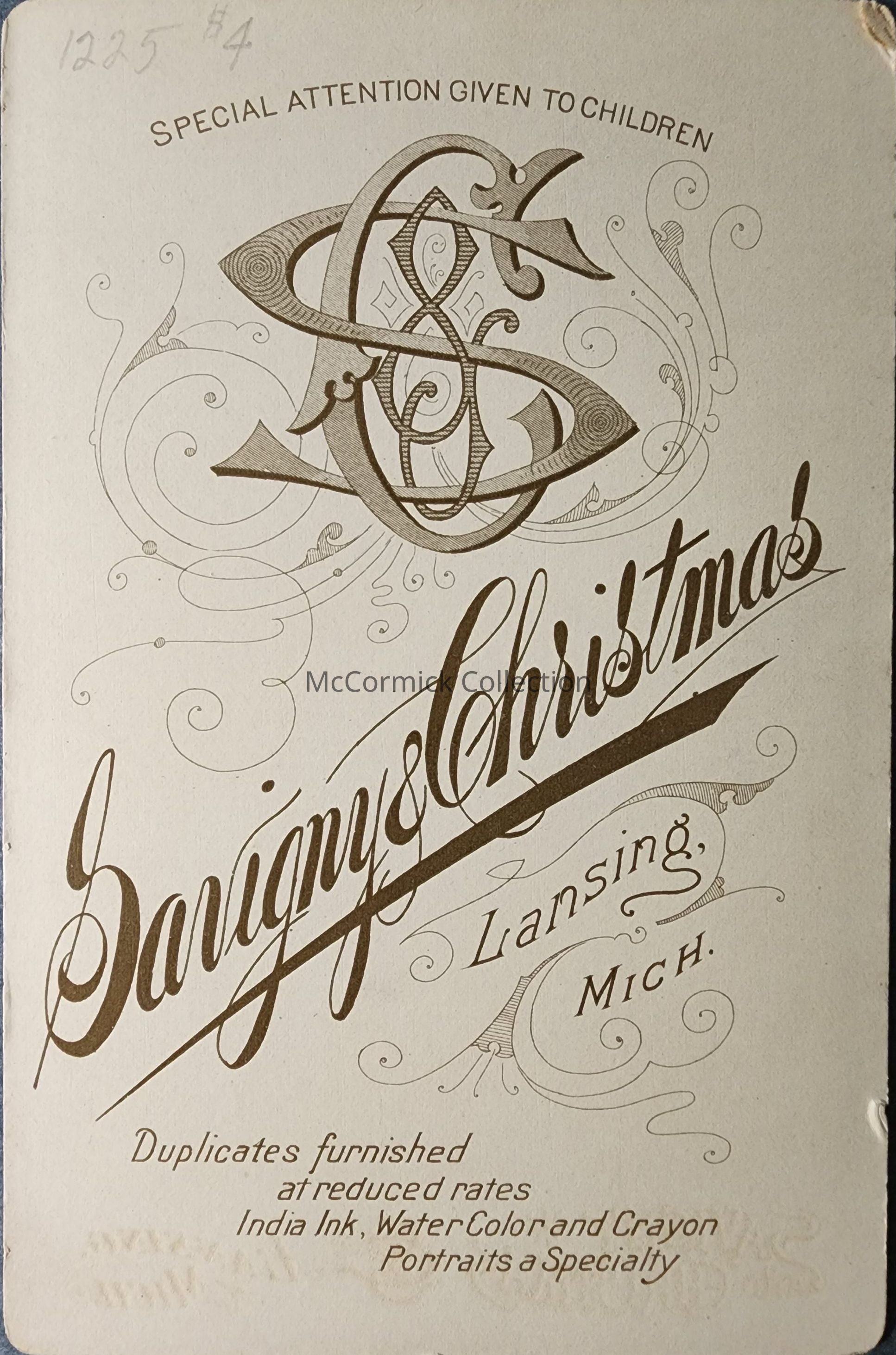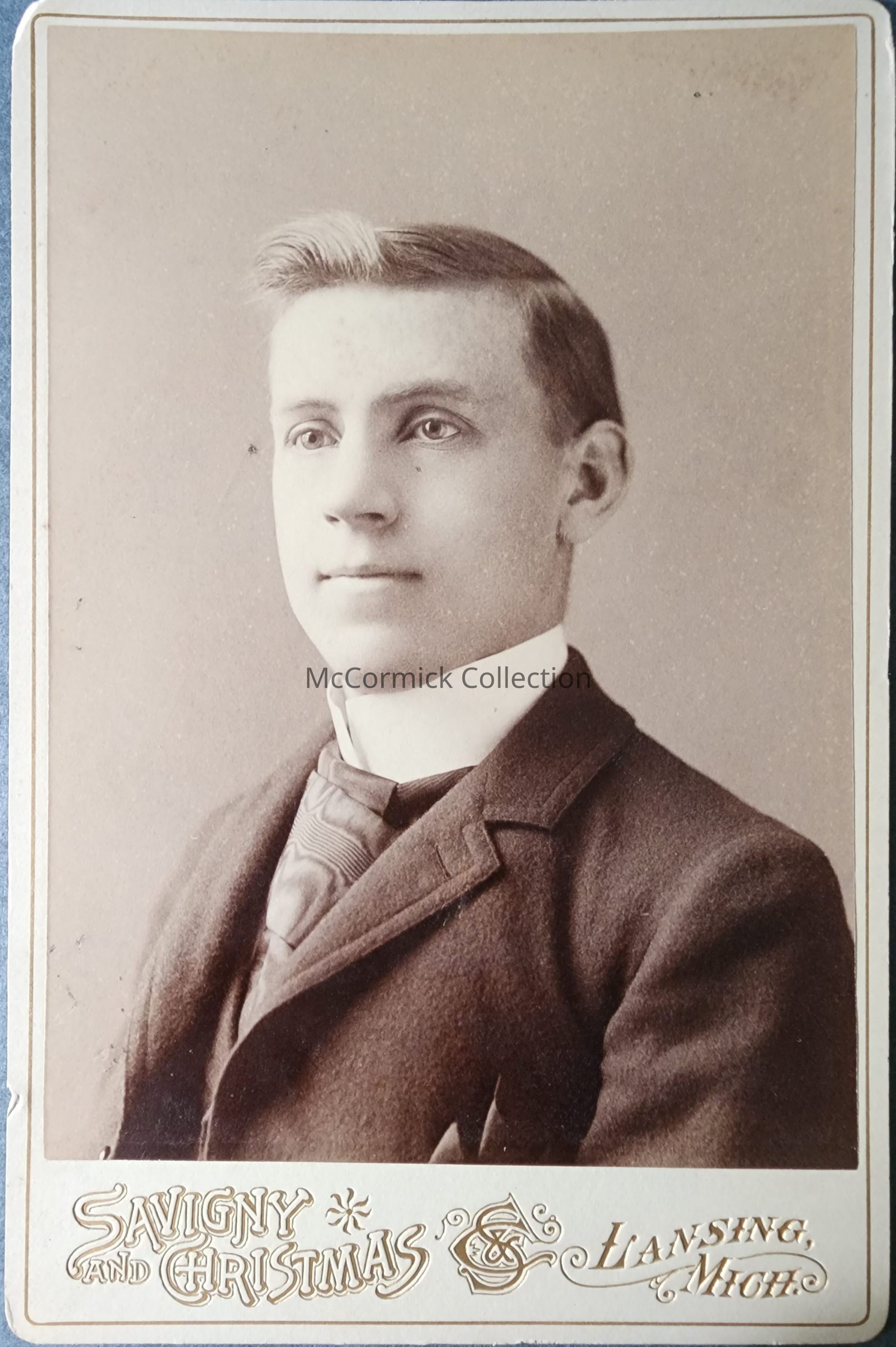 Cabinet card photograph of an unidentified man by Lansing photographer Savigny and Christmas.