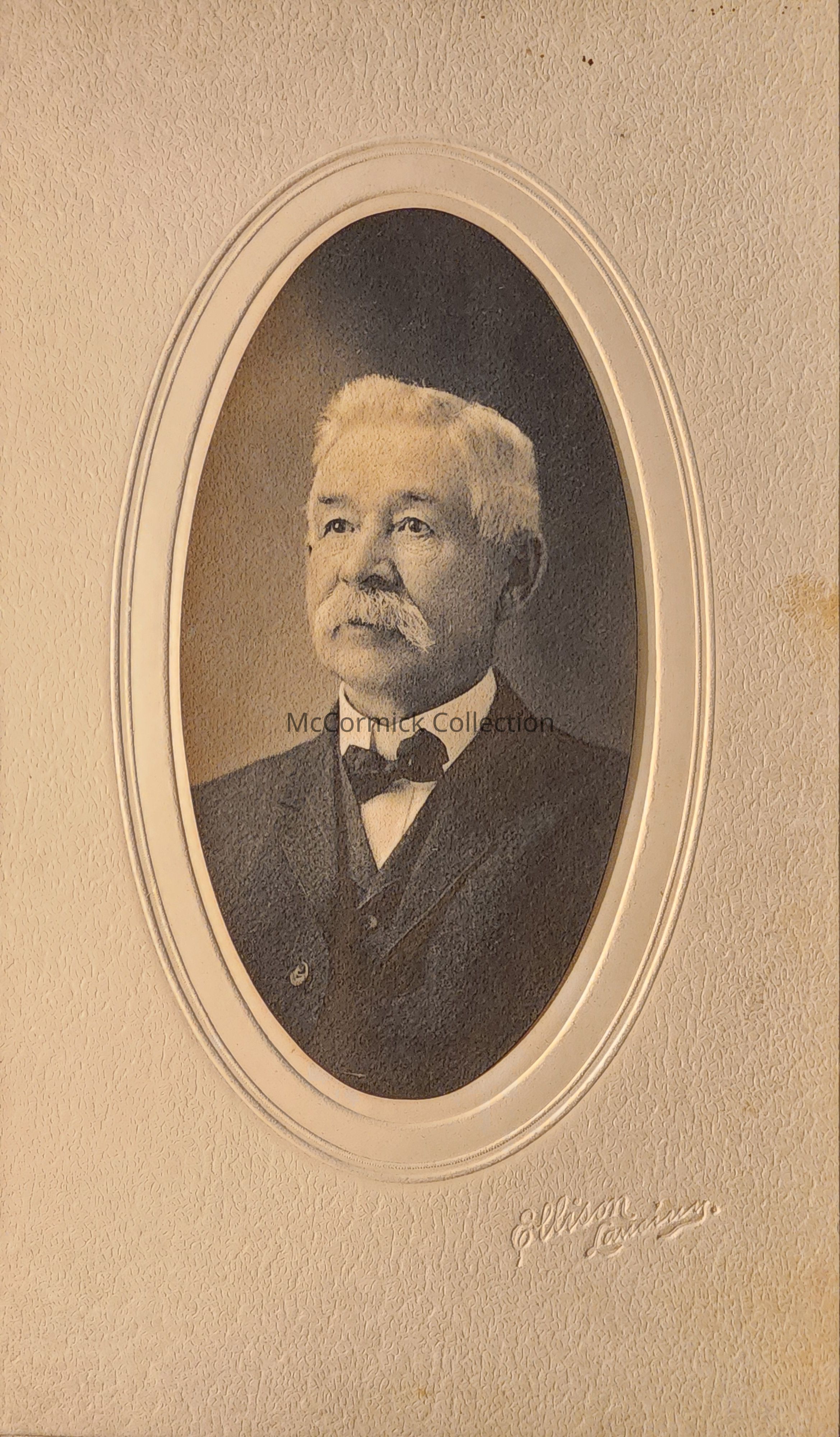 Card mounted photograph of an unidentified man by Lansing photographer Ellison. Retains tissue and paper folder.
