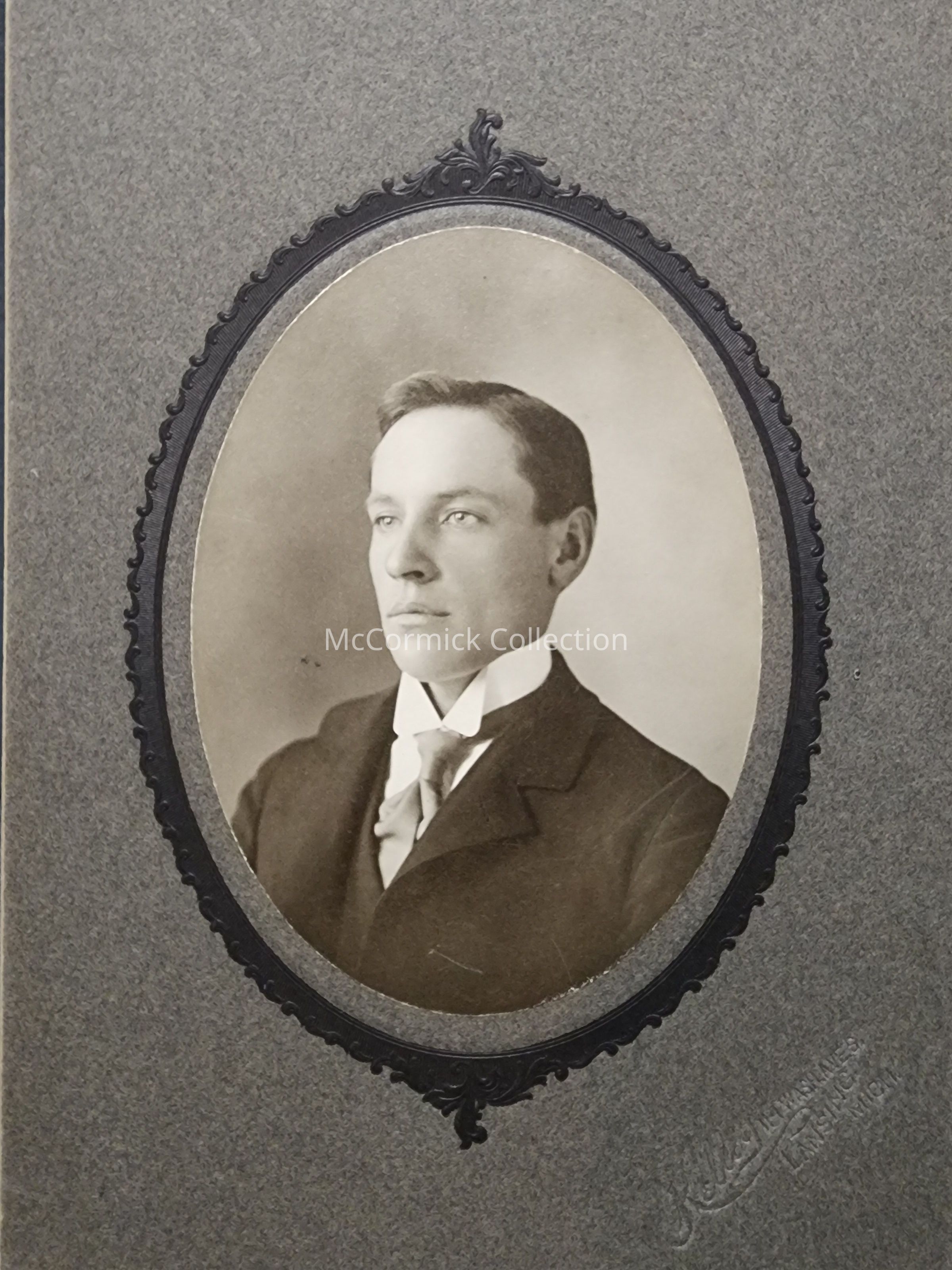 Card mounted photograph of an unidentified man by Lansing photographer Kelley.