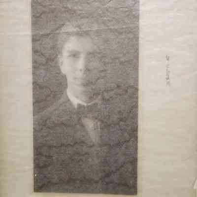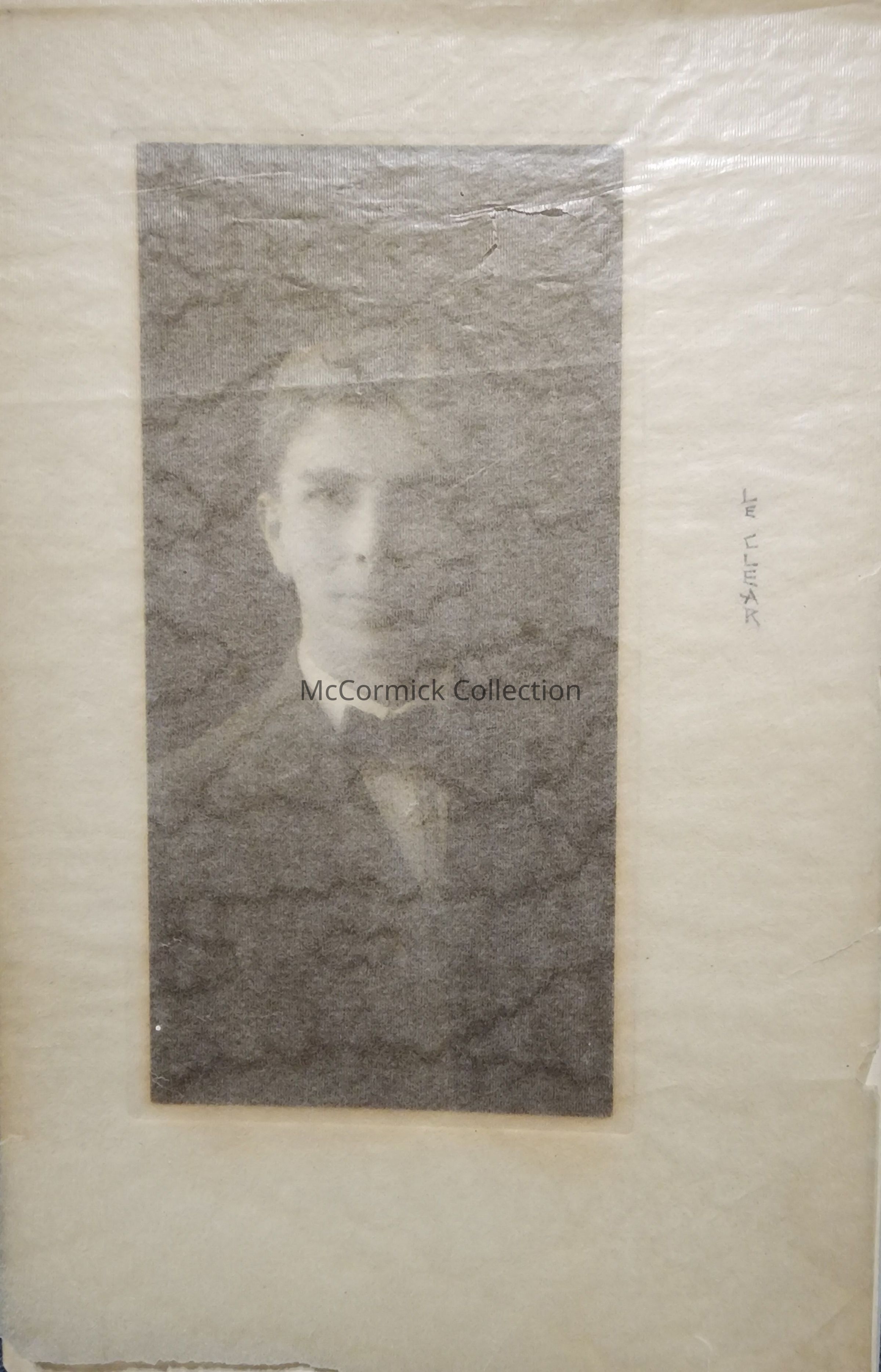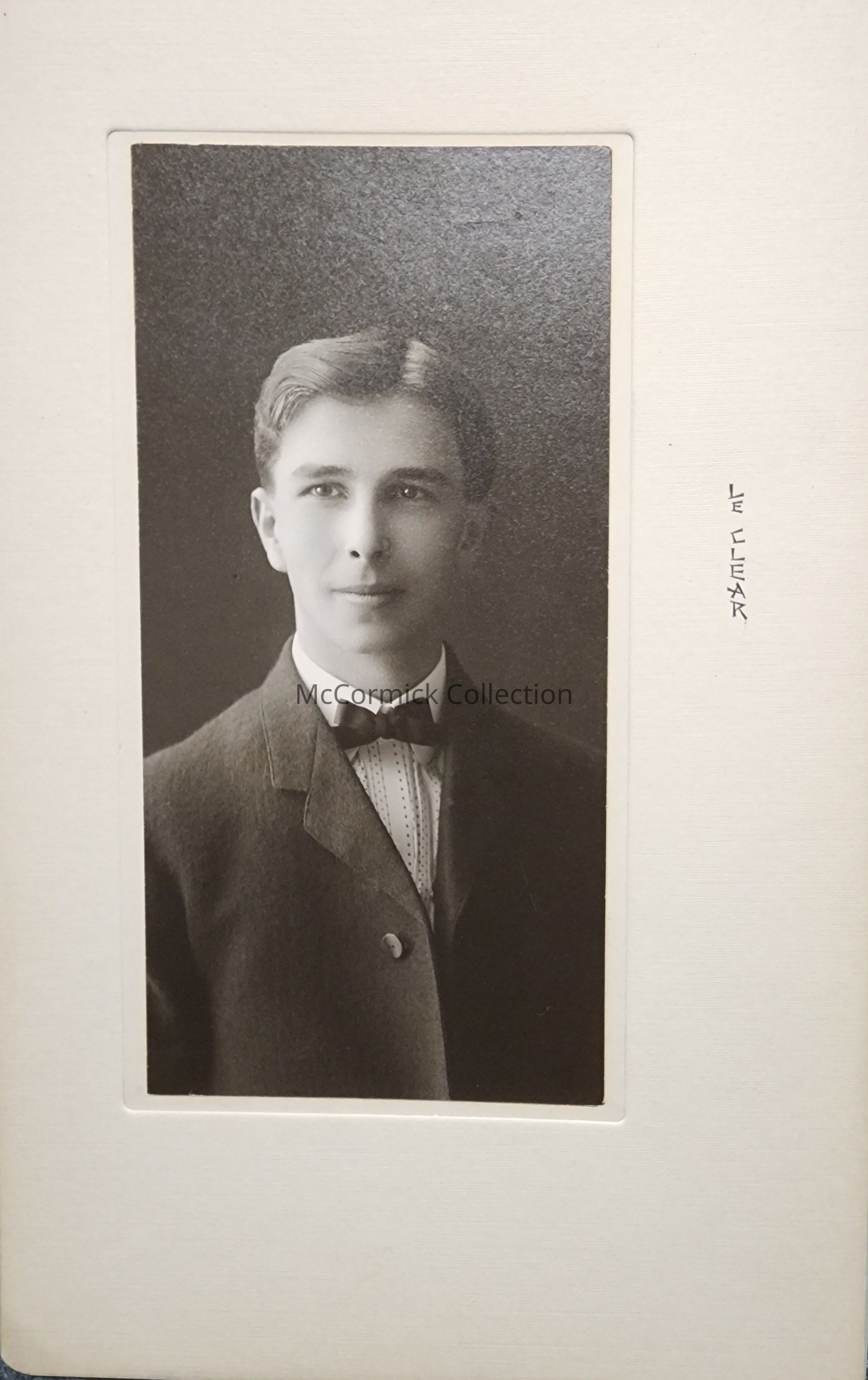 Card mounted photograph of an unidentified man by Lansing photographer LeClear. Still has tissue cover attached. From the Chase Collection.
