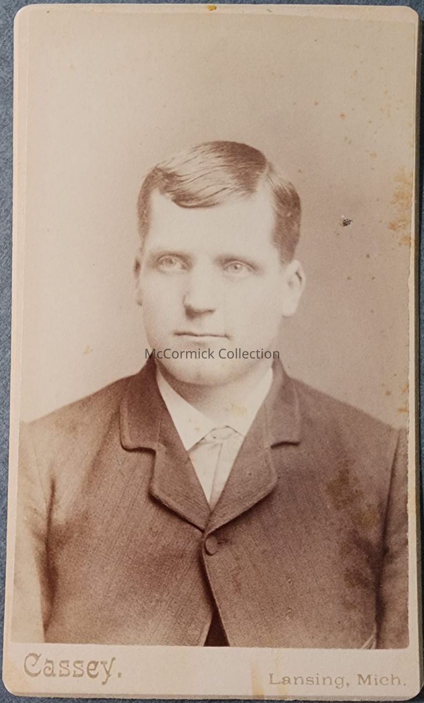 Carte de visite photograph of an unidentified man by Lansing photographer Cassey.
