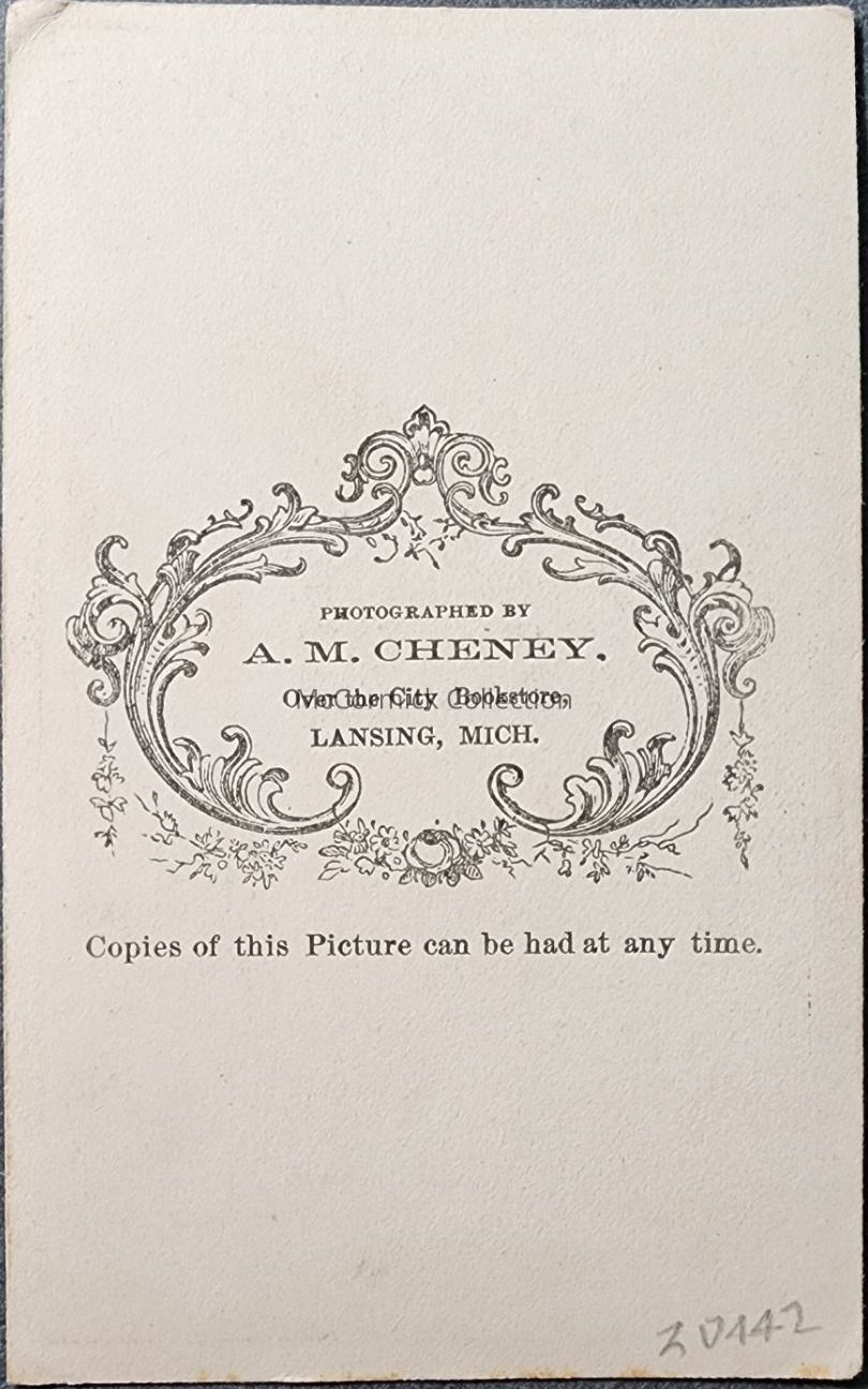 Carte de visite photograph of an unidentified man by Lansing photographer A.M. Cheney. Handcolored.