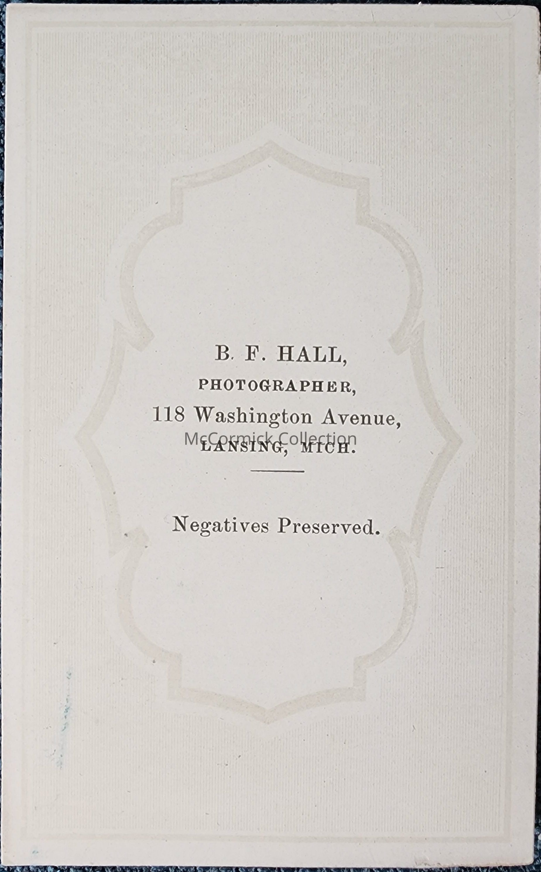 Portrait photograph of an unidentified man by Lansing photographer Hall, circa 1860s. Gift of Eric Satterlee.