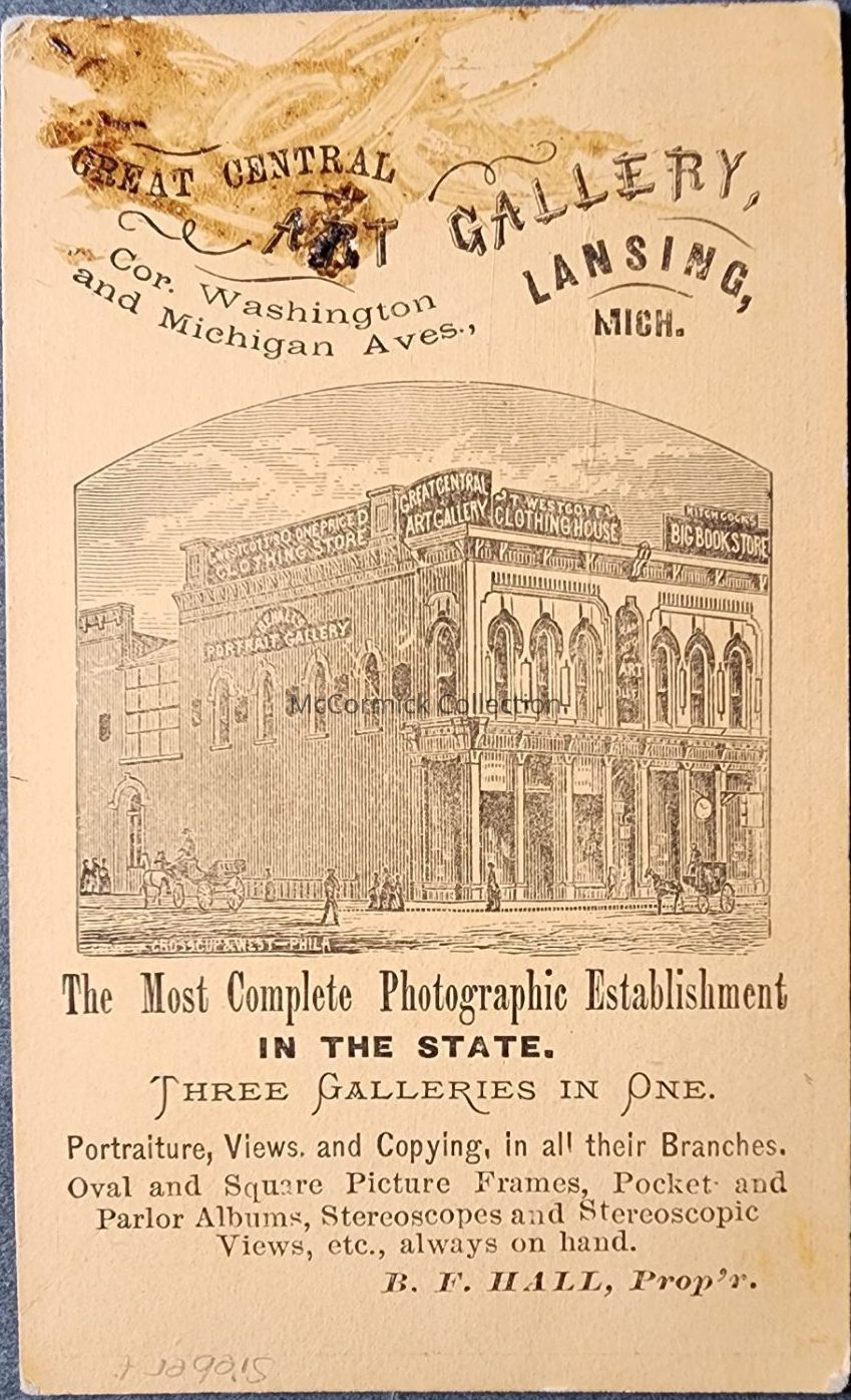 Carte de visite photograph of an unidentified man by Lansing photographer B.F. Hall. From Siebert Estate.