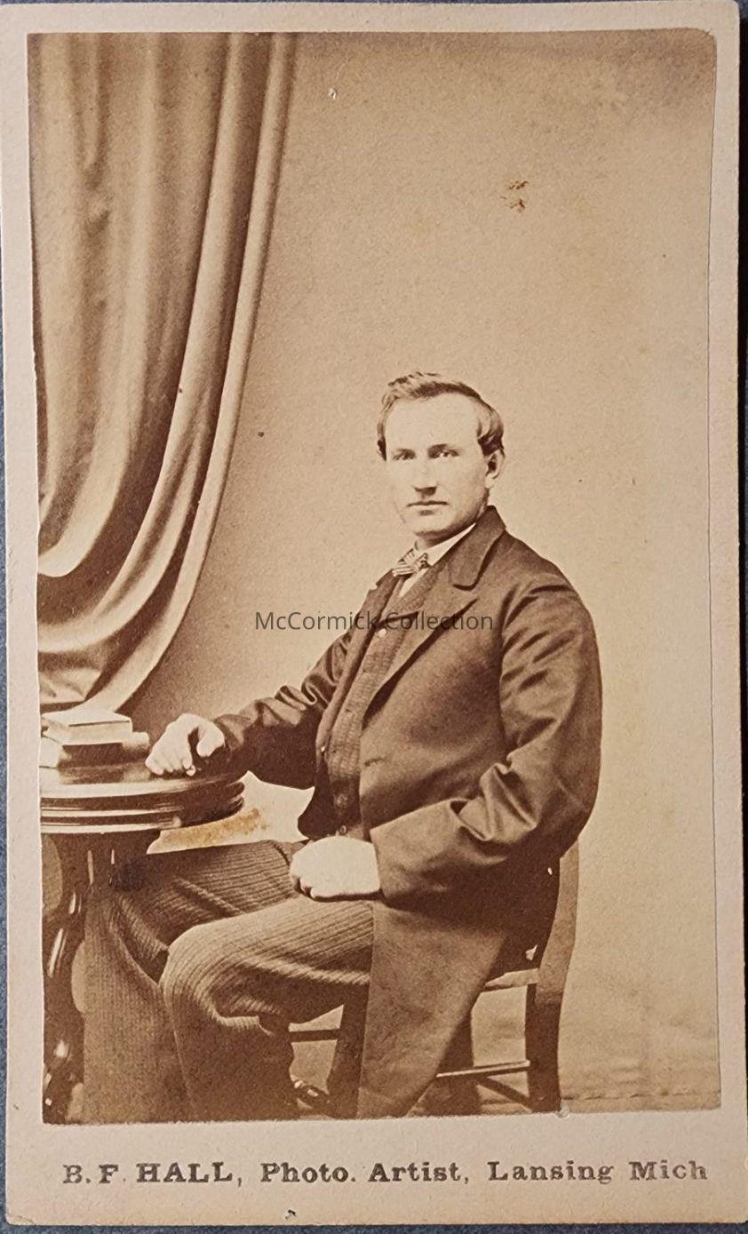 Carte de visite photograph of an unidentified man by Lansing photographer Hall.
