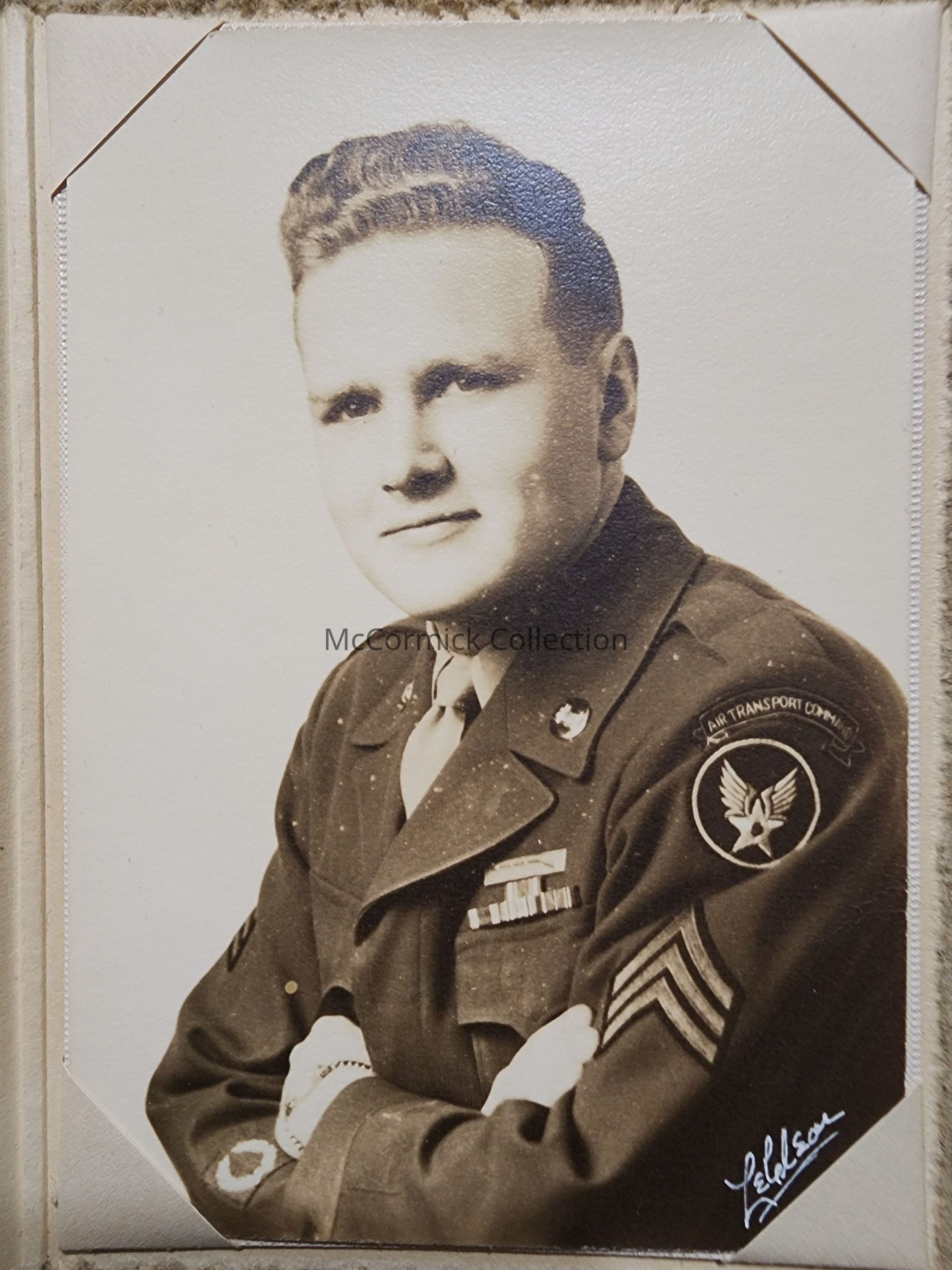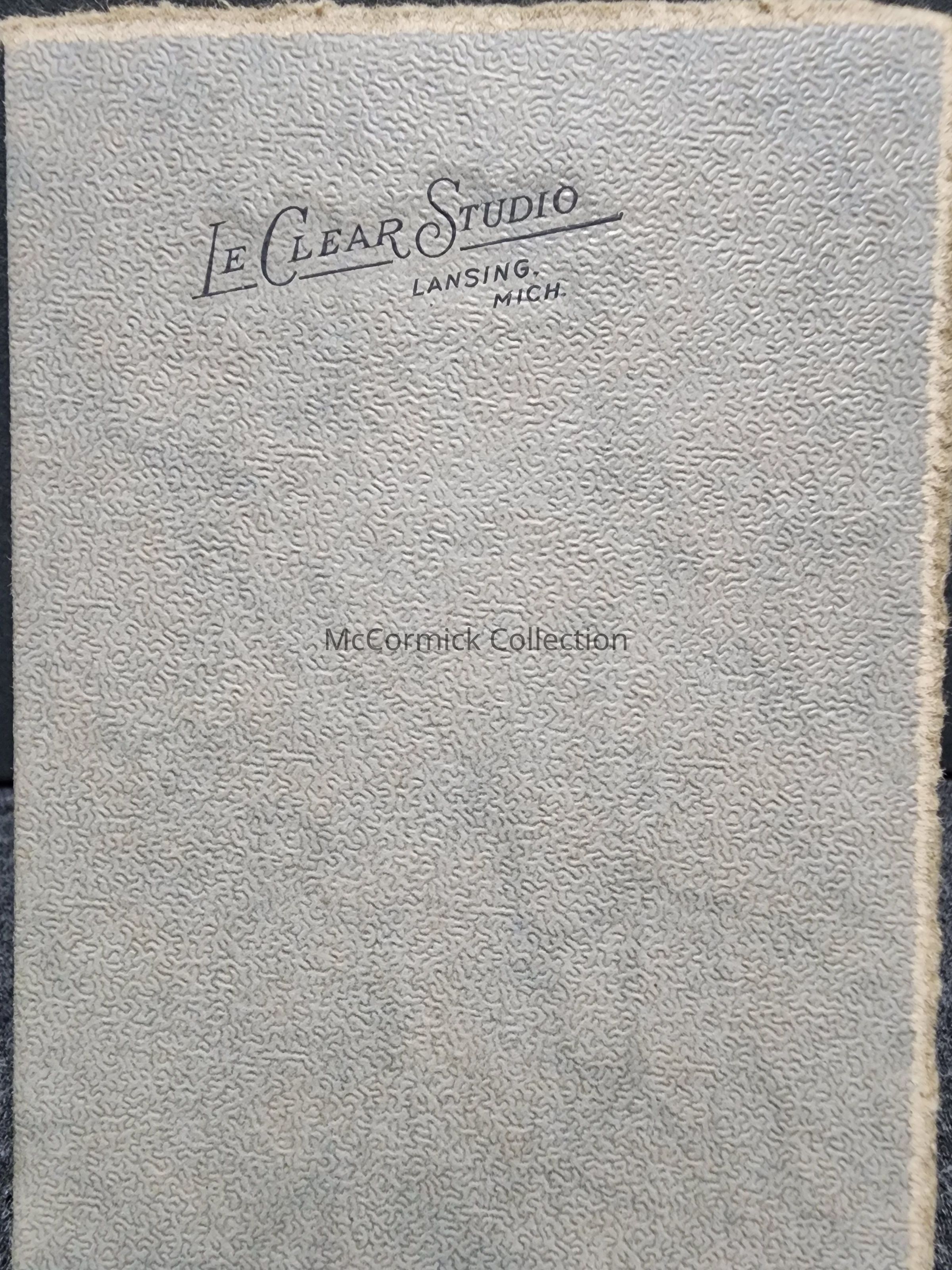 Folder frame mounted photograph of an unidentified man in military uniform by Lansing photographer LeClear.