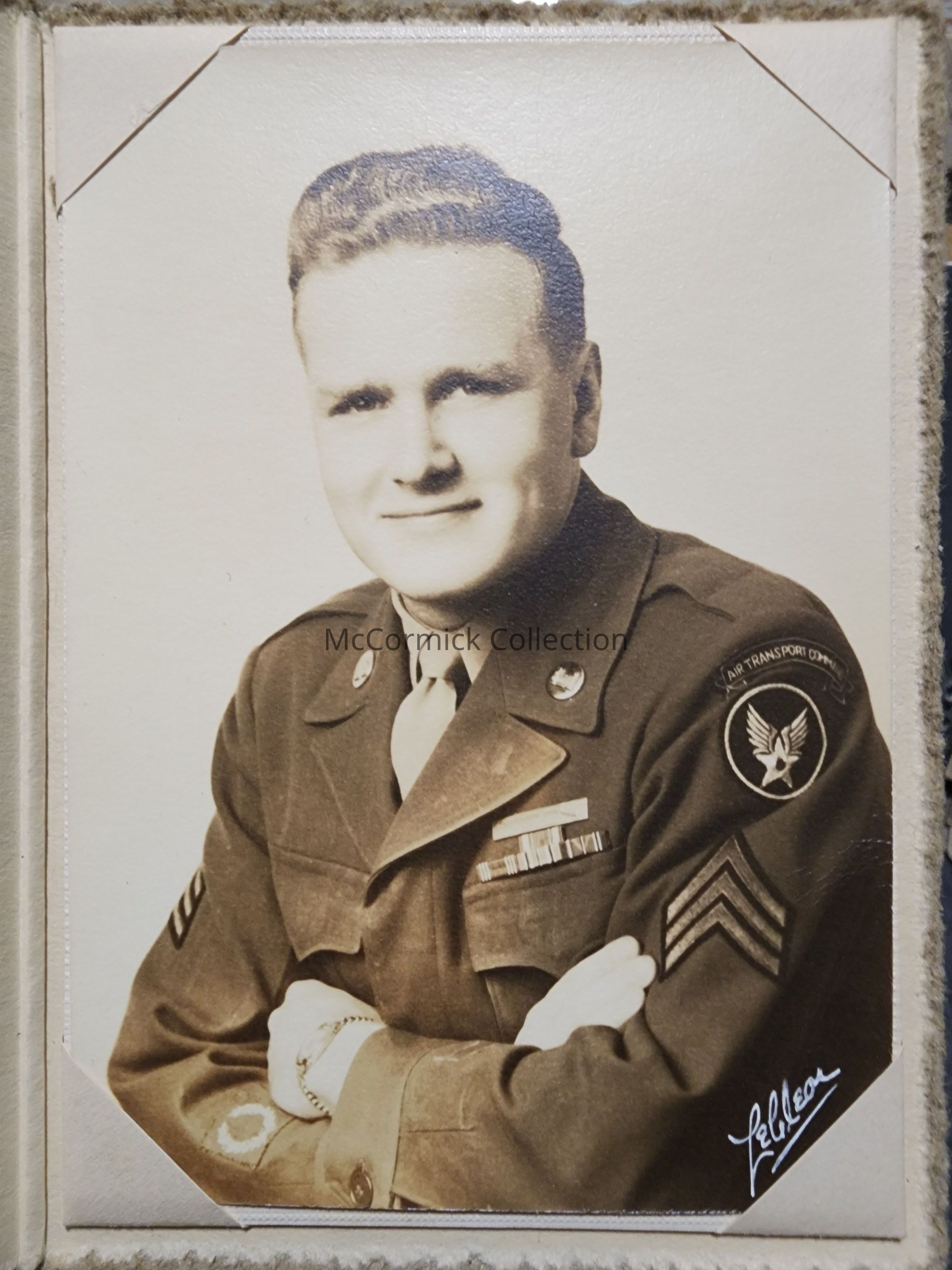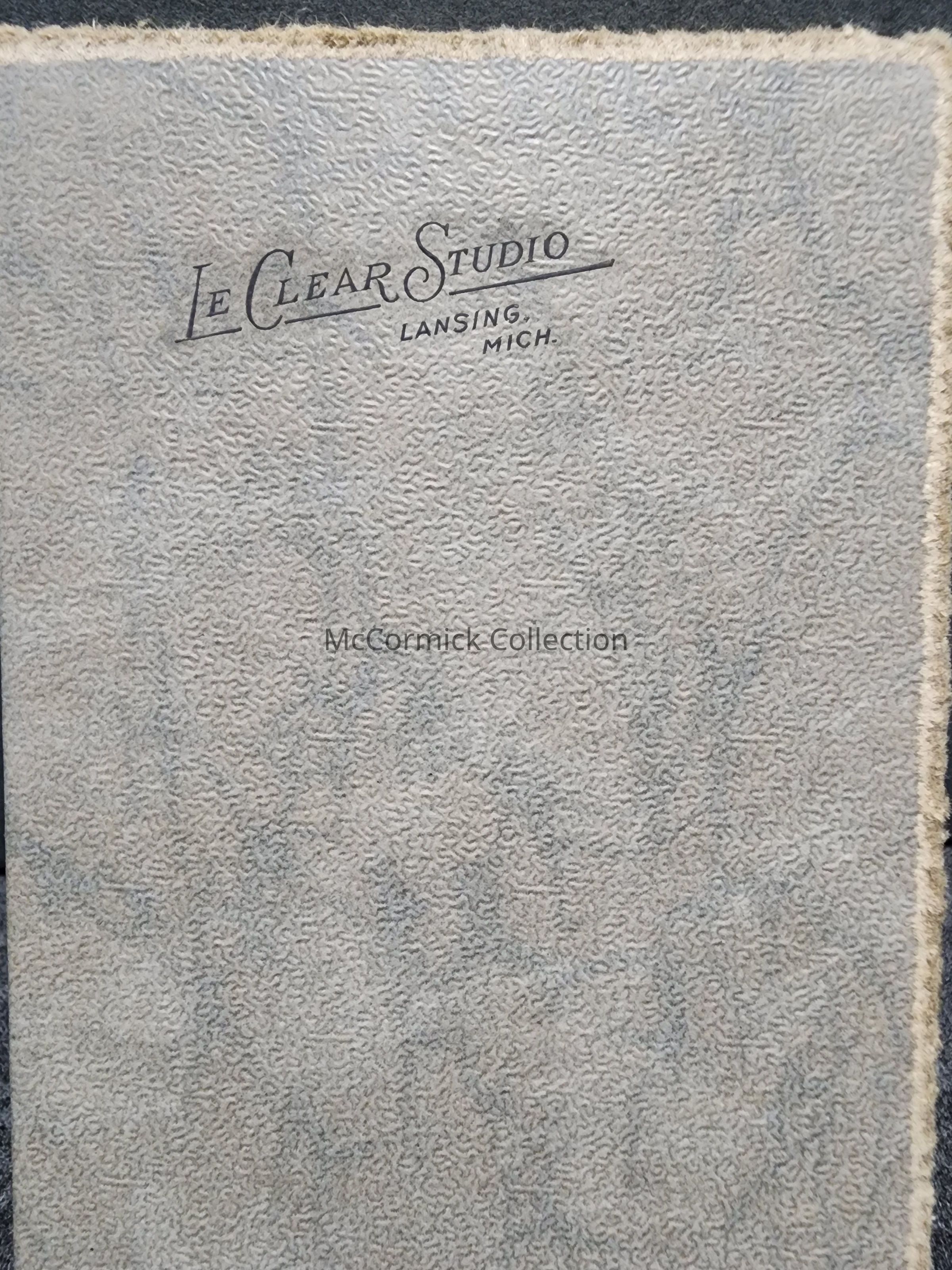 Folder frame mounted photograph of an unidentified man in military uniform by Lansing photographer LeClear.