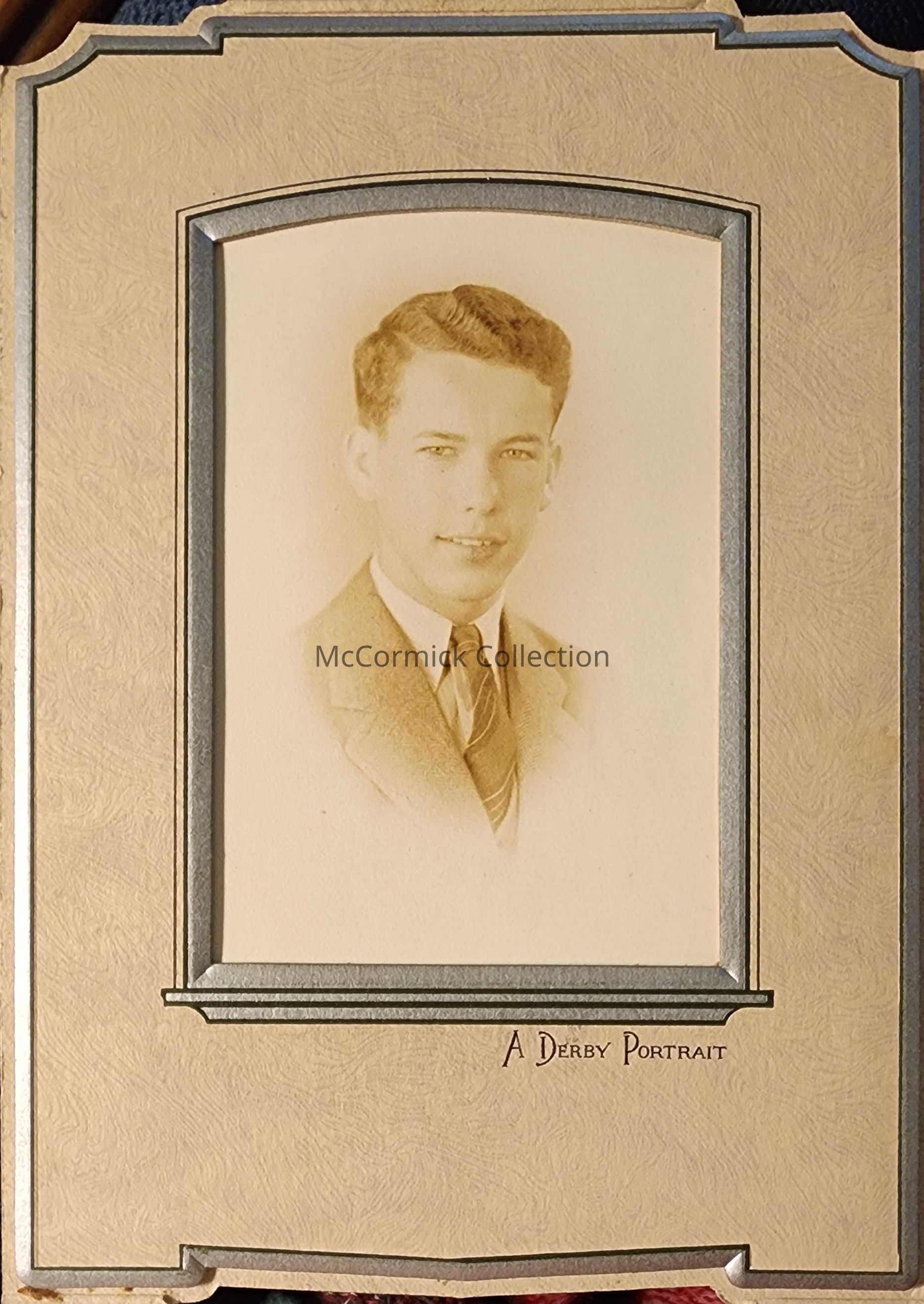Folder frame mounted photograph of an unidentified man by Lansing photographer Derby.