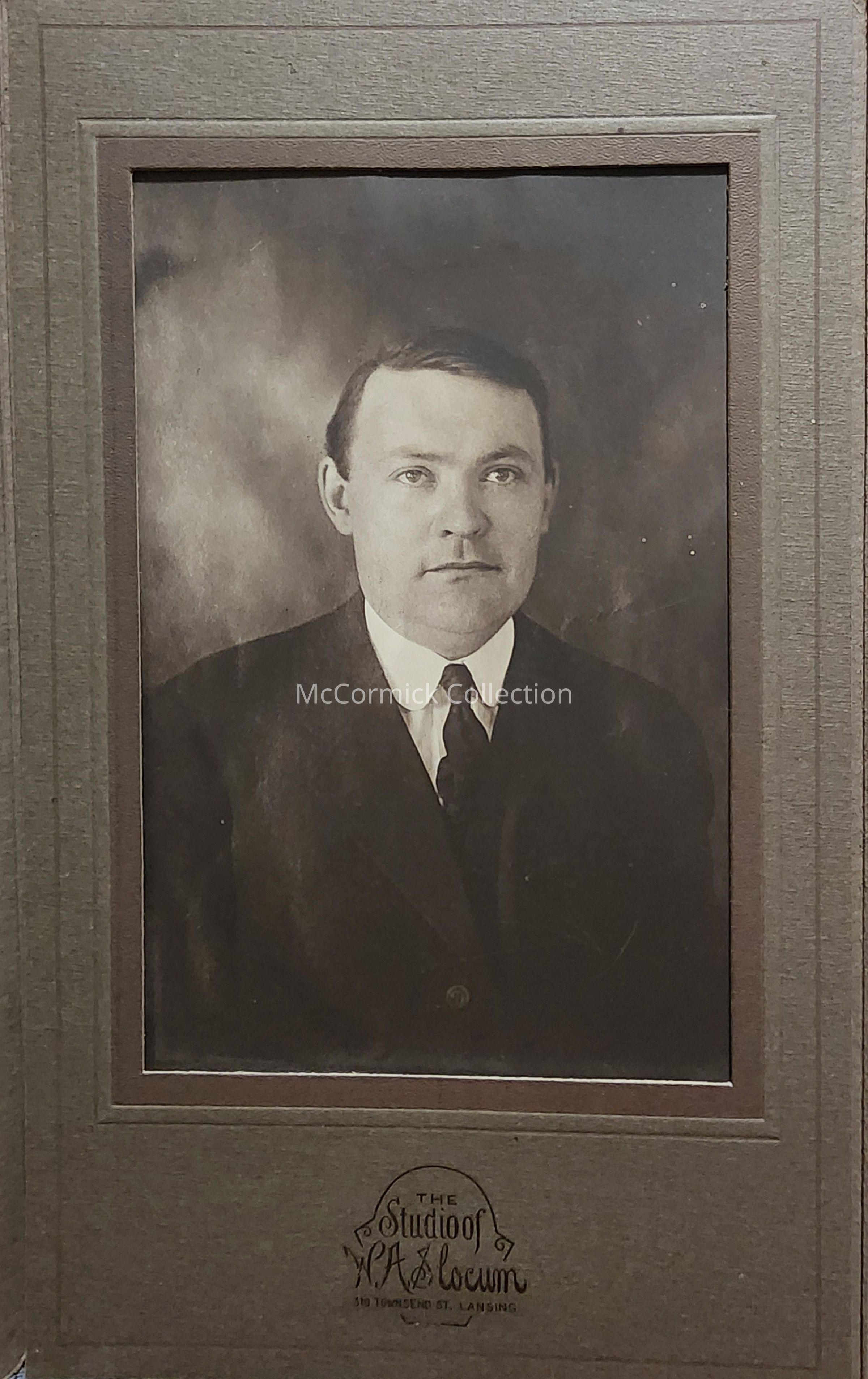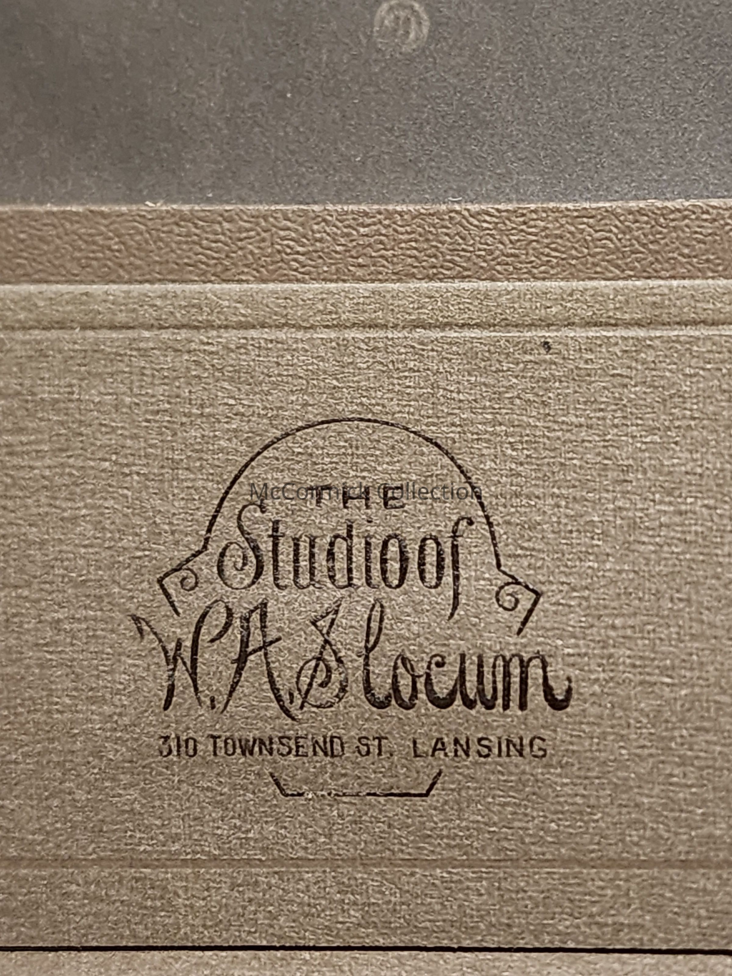Folder frame mounted photograph of an unidentified man by Lansing photographer W.A. Slocum.