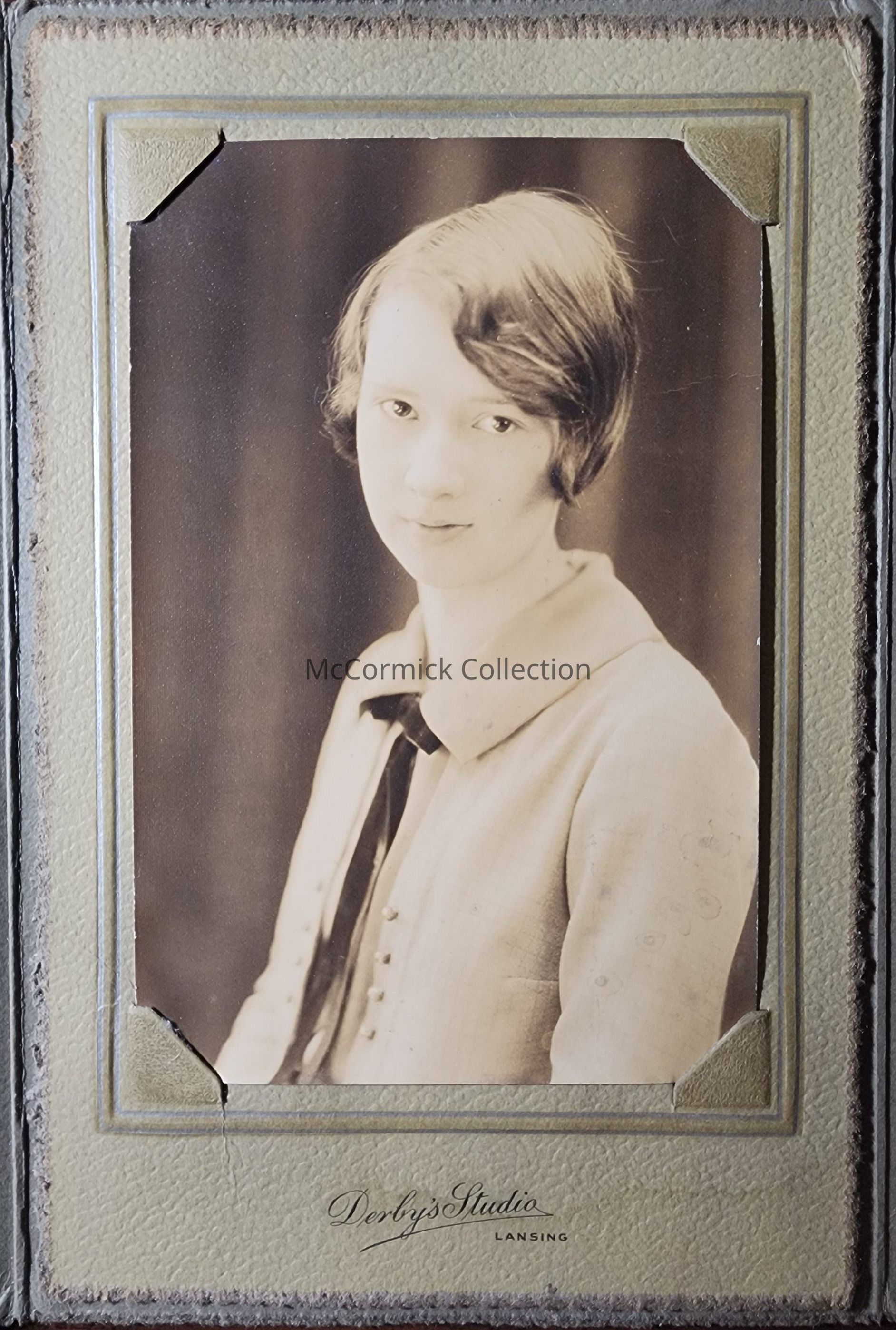 Portrait photograph of an unidentified woman by Lansing photographer Derby.